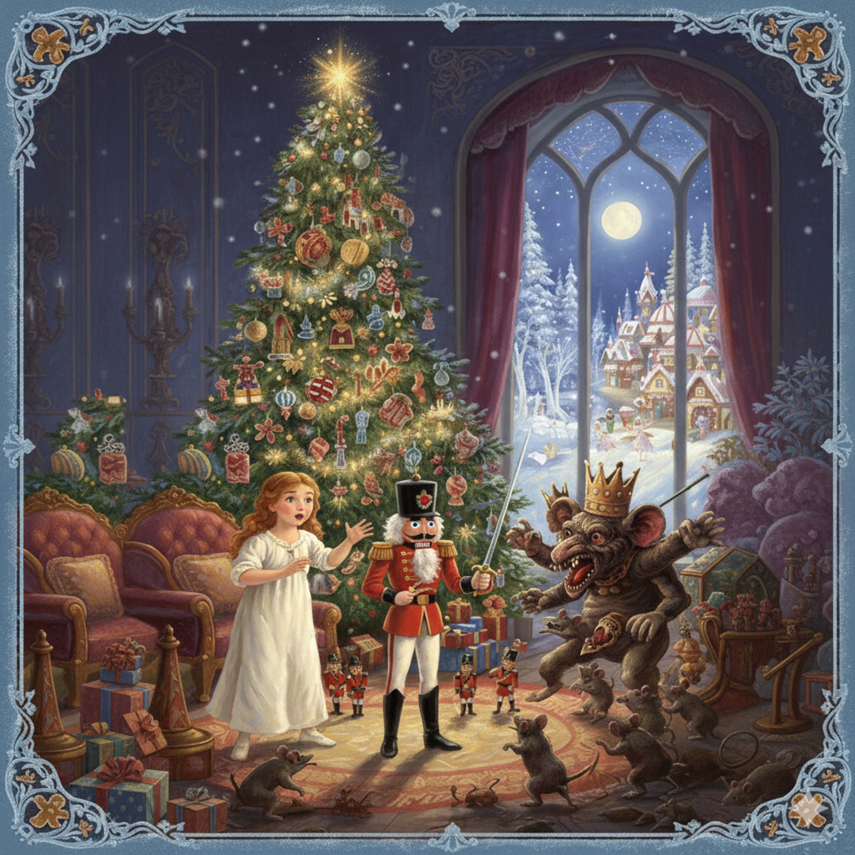 Oli jouluaatto. Ulkona lumihiutaleet tanssivat suurina ja pehmeinä, peittäen kaupungin kadut valkoiseen vaippaan. Stahlbaumin perheen kodissa vallitsi jännitys. Lapset, Klaara ja hänen veljensä Fritz, tiesivät, että salongin ovien takana odotti jotain ihmeellistä.