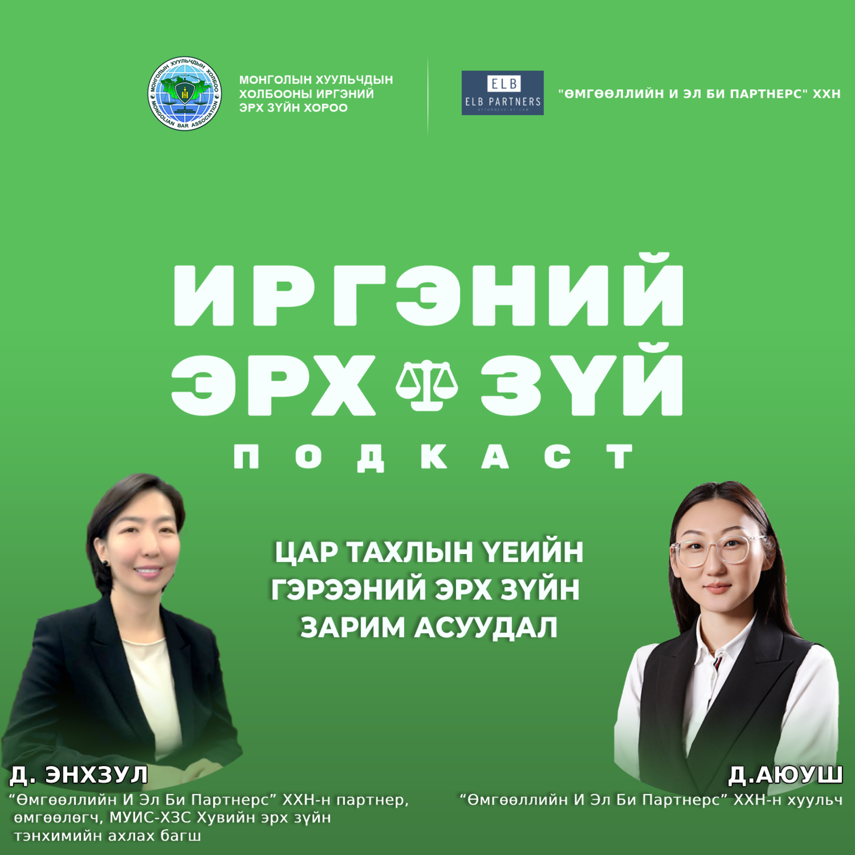 Иргэний эрх зүй подкастын шинэ дугаар “Цар тахлын үеийн гэрээний эрх зүйн зарим асуудал” сэдвээр та бүхэнд хүрч байна. Энэ сэдвийн хүрээнд цар тахлын үеийн гэрээний харилцаанд хөндөгдөж буй нийтлэг асуудал болох үүрэг гүйцэтгэх боломжгүй нөхцөл, гэрээ байгуулах үндэслэл болсон нөхцөл байдал өөрчлөгдөх, гэнэтийн буюу давагдашгүй хүчний шинжтэй онцгой нөхцөл байдал болоод цар тахлын үед гэрээ байгуулахад анхаарах хүчин зүйлийн тухай ярилцав.