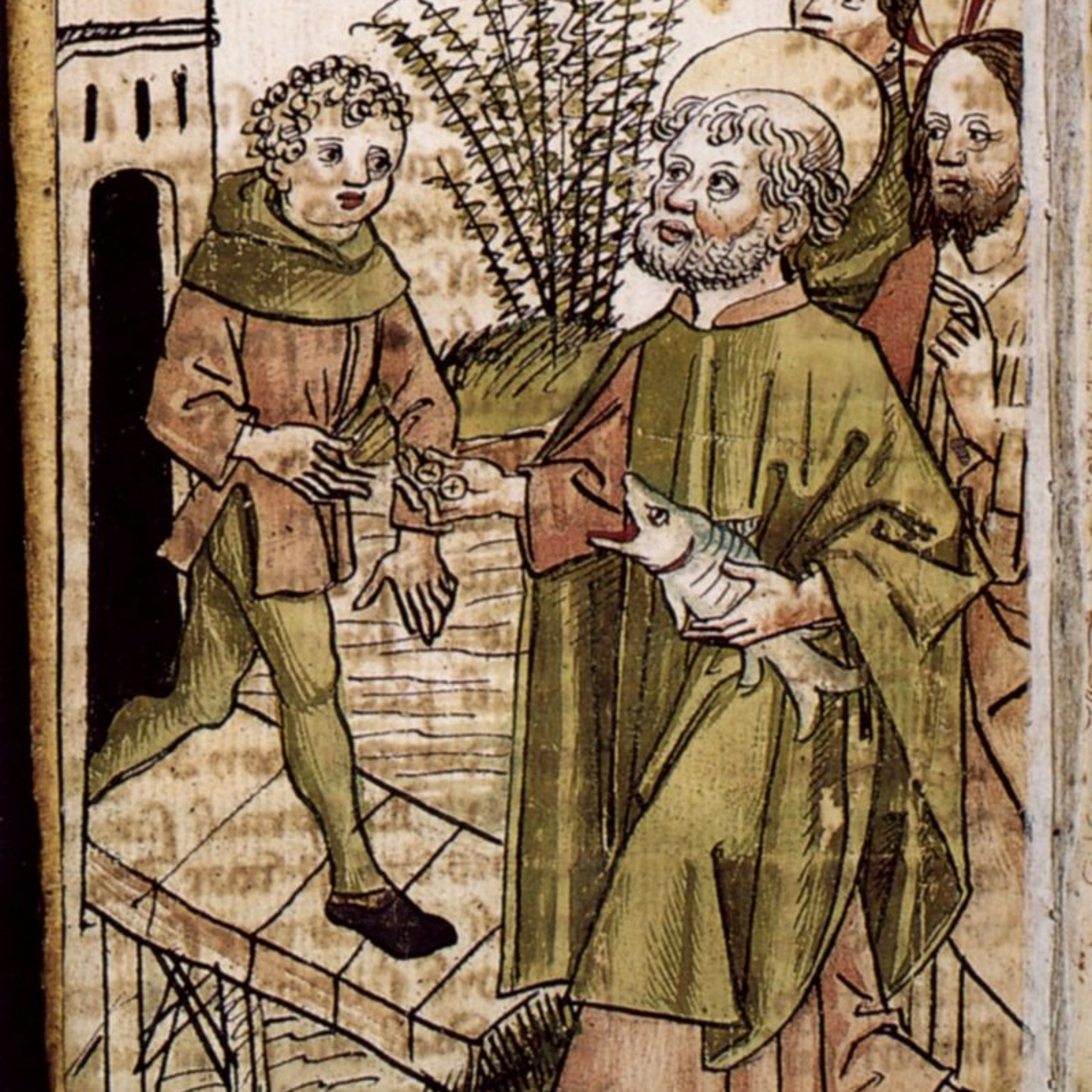 Image: Apostle Peter paying the temple tax with coin from the fish's mouth by Augustin Tünger, 1486.