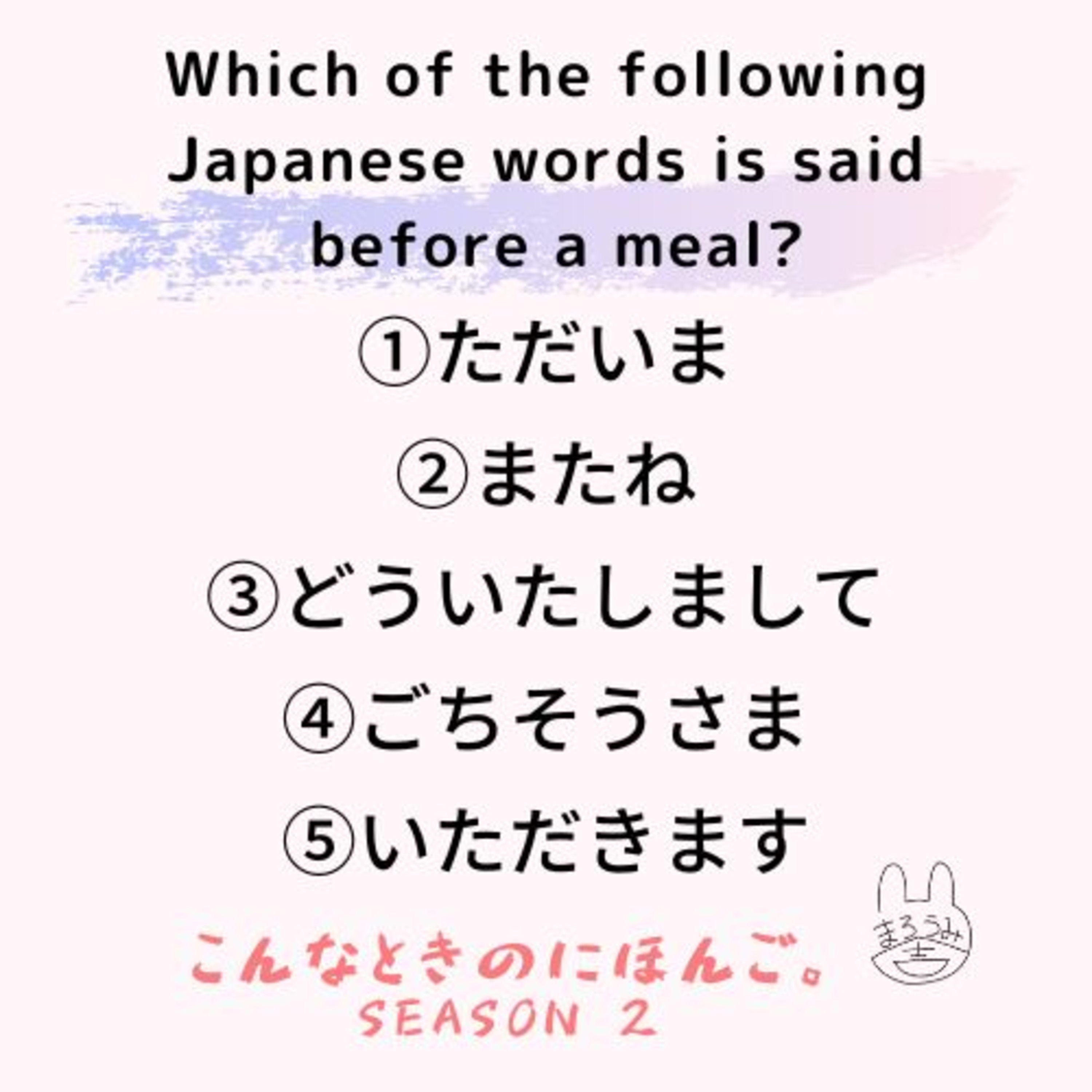 次のうち、食事の前にいう日本語はどれでしょう。