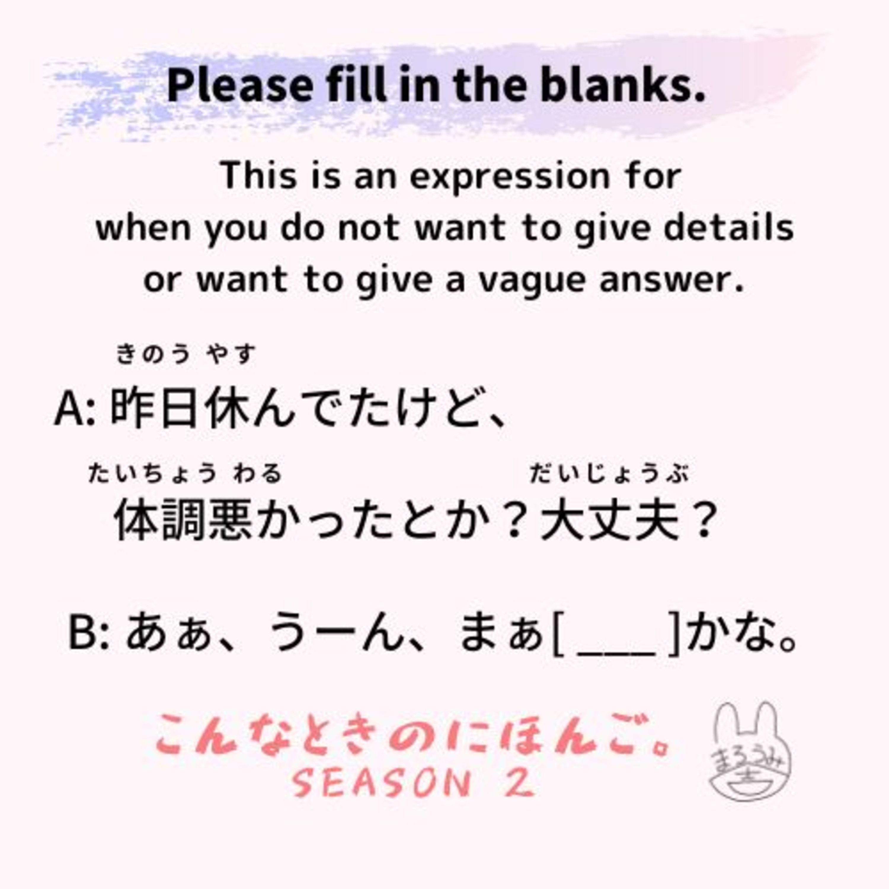 Please think of the correct Japanese words to fit the following blanks. This is an expression for when you do not want to give details or want to give a vague answer.