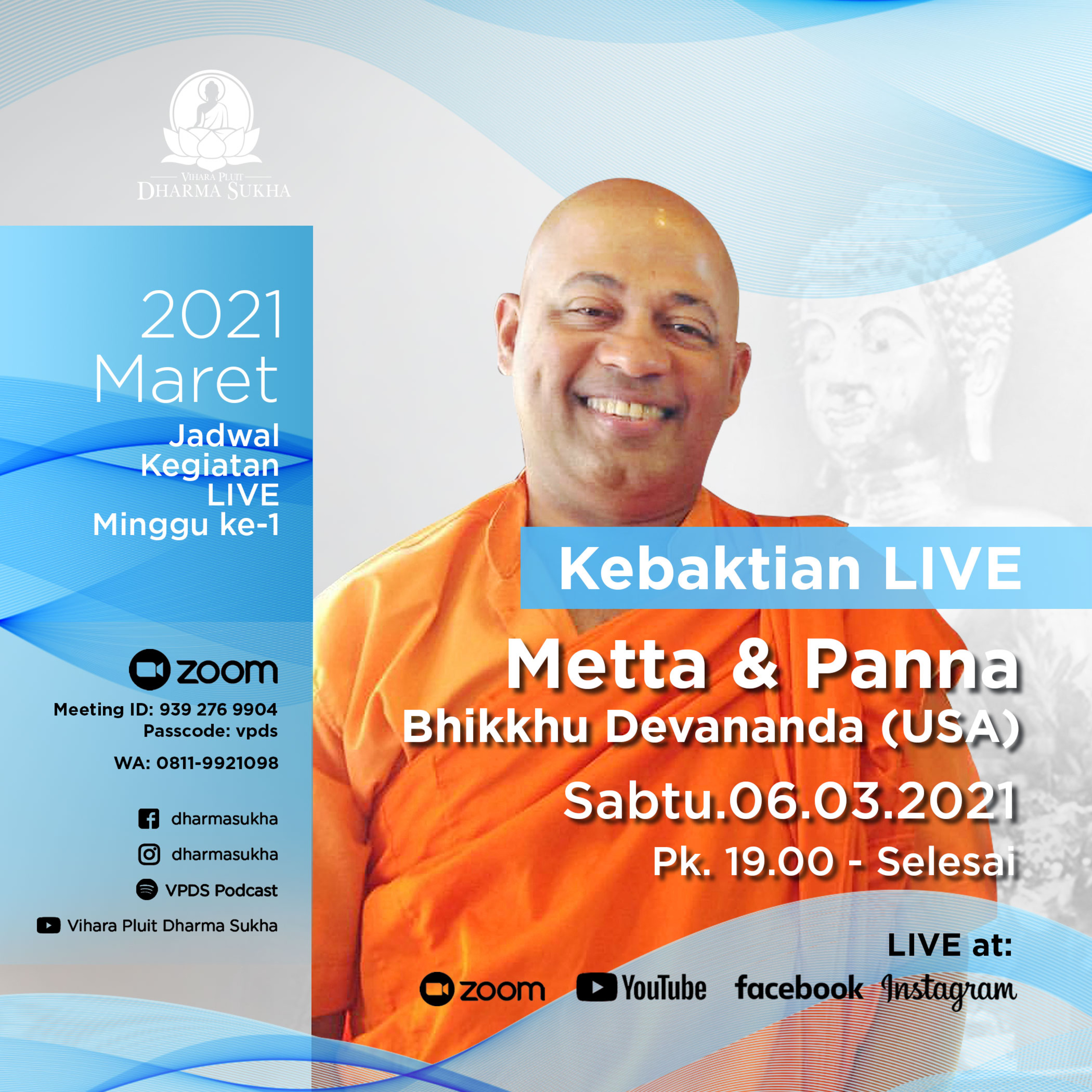 Metta & Panna by Bhikkhu Devananda Kebaktian Sabtu 6 Maret 2021