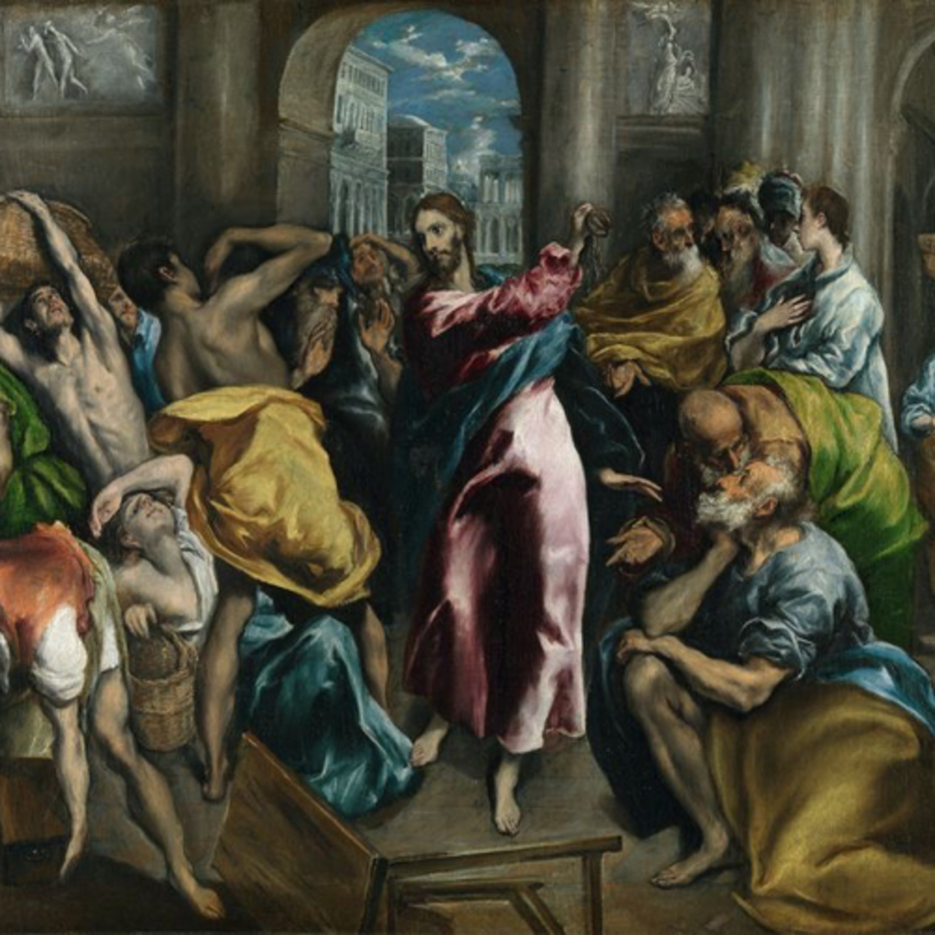 Se acercaba la Pascua de los judíos y Jesús subió a Jerusalén. Y encontró en el templo a los vendedores de bueyes, ovejas y palomas, y a los cambistas sentados; y, haciendo un azote de cordeles, los echó a todos del templo, ovejas y bueyes; y a los cambistas les esparció las monedas y les volcó las mesas; y a los que vendían palomas les dijo: