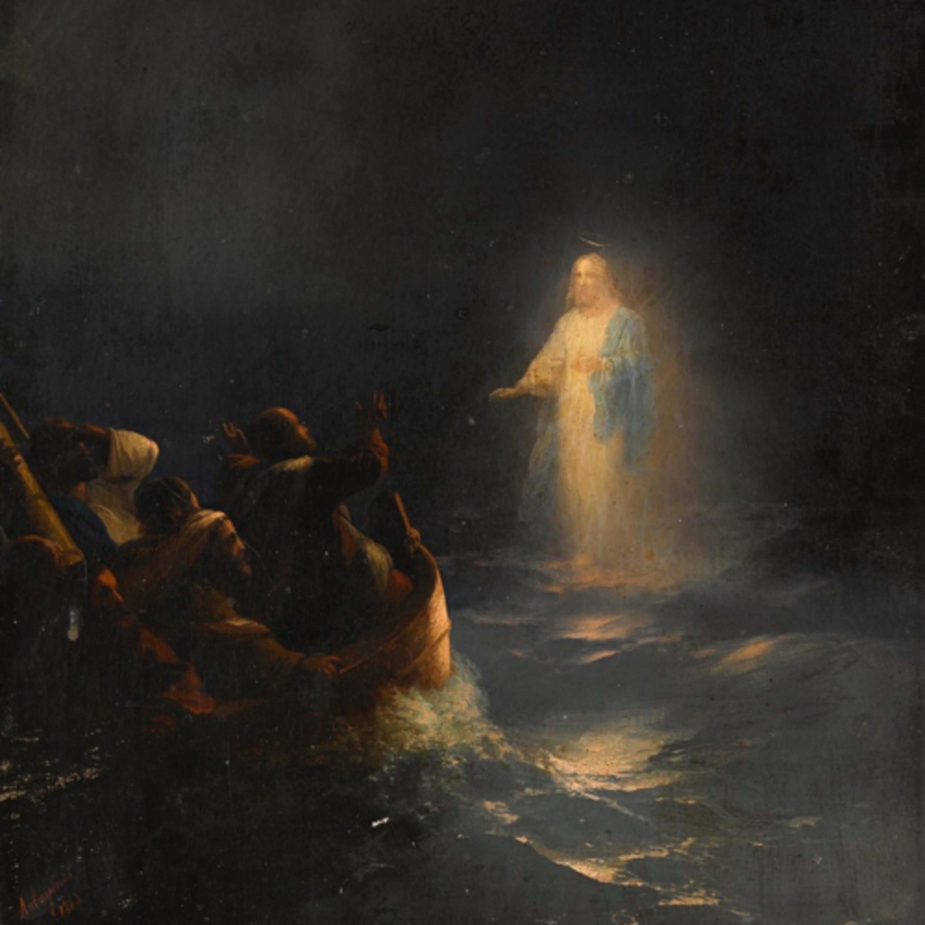 Al oscurecer, los discípulos de Jesús bajaron al mar, embarcaron y empezaron la travesía hacia Cafárnaún.