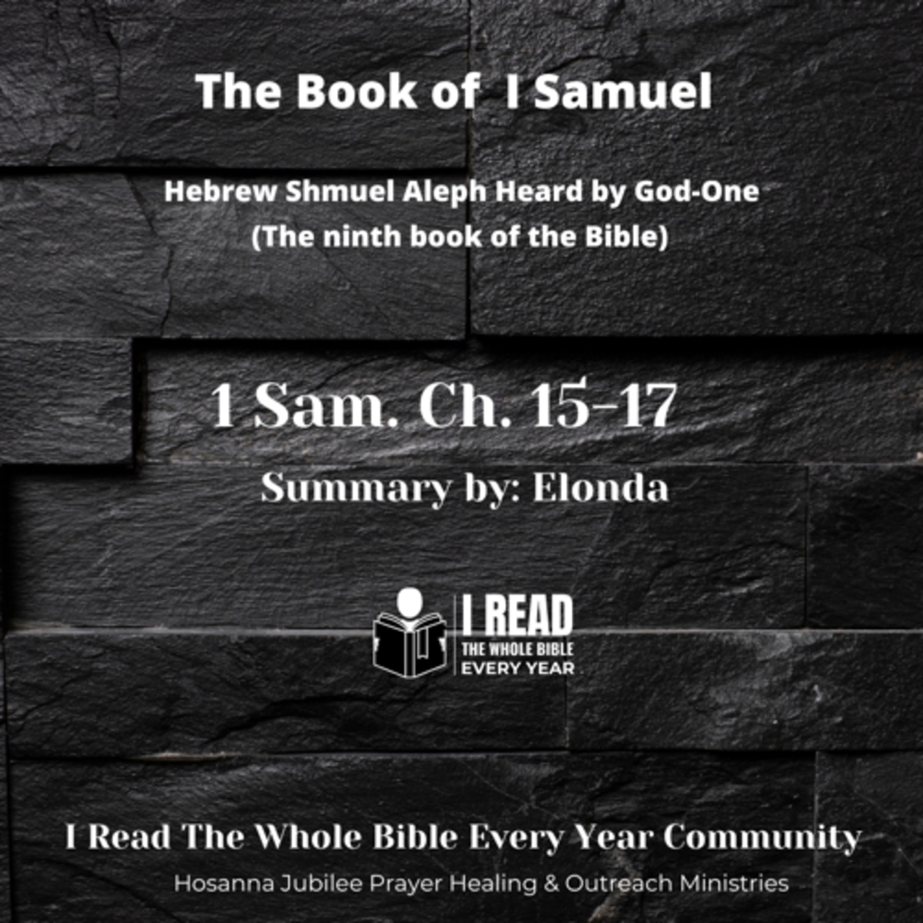 Chp 15 the Lord rejected Saul as king. Cho 16 Samuel anointing David as king Chp 17 David and Goliath