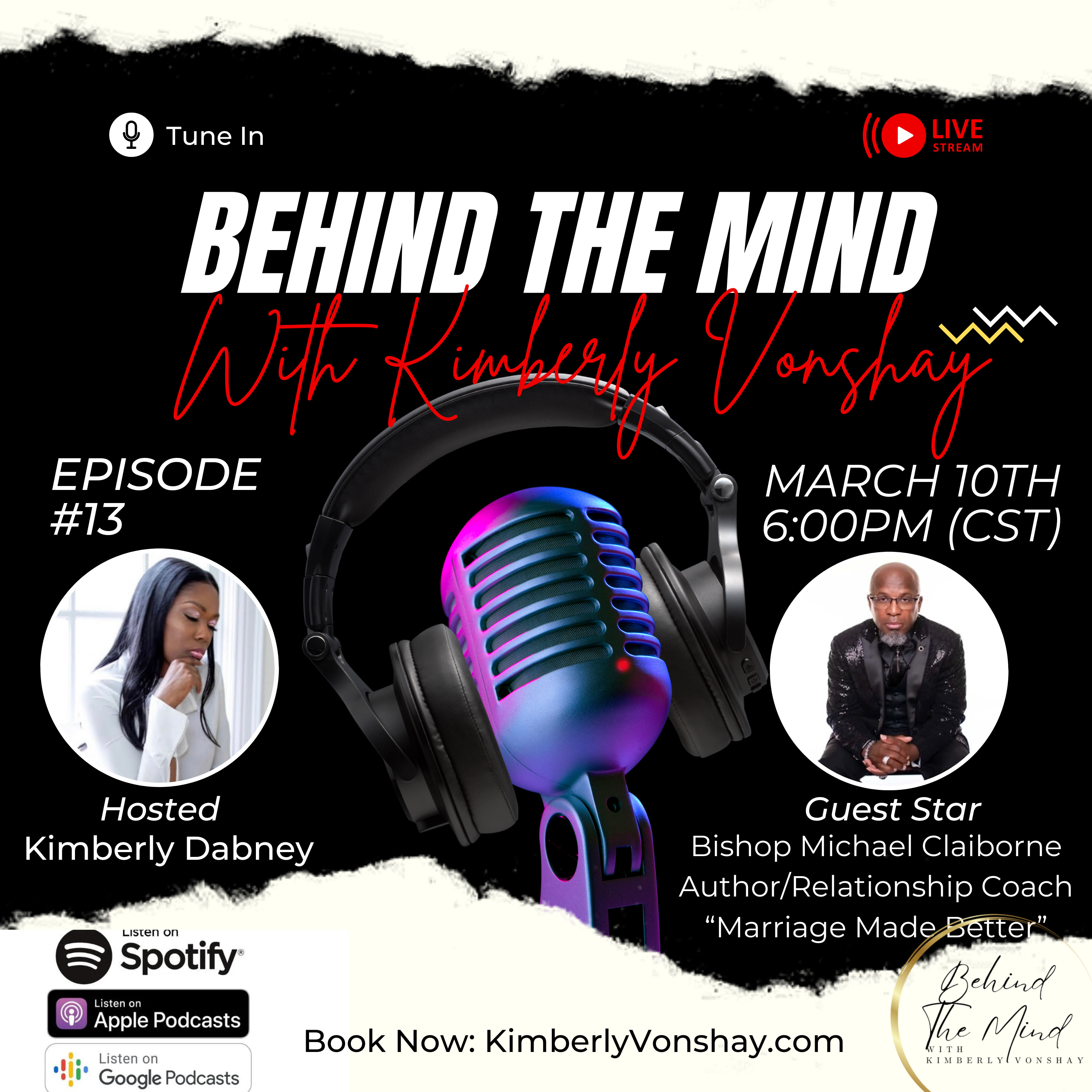 On today’s Behind The Mind With Kimberly Vonshay as I sit down with Bishop Michael Claiborne for an insightful discussion on embracing love, repairing relationships, and fostering spiritual growth. Tune in on Spotify, Apple Podcasts, Google Podcasts, and all major podcasting platforms. *I do not own the rights to any of the music being played throughout the show.