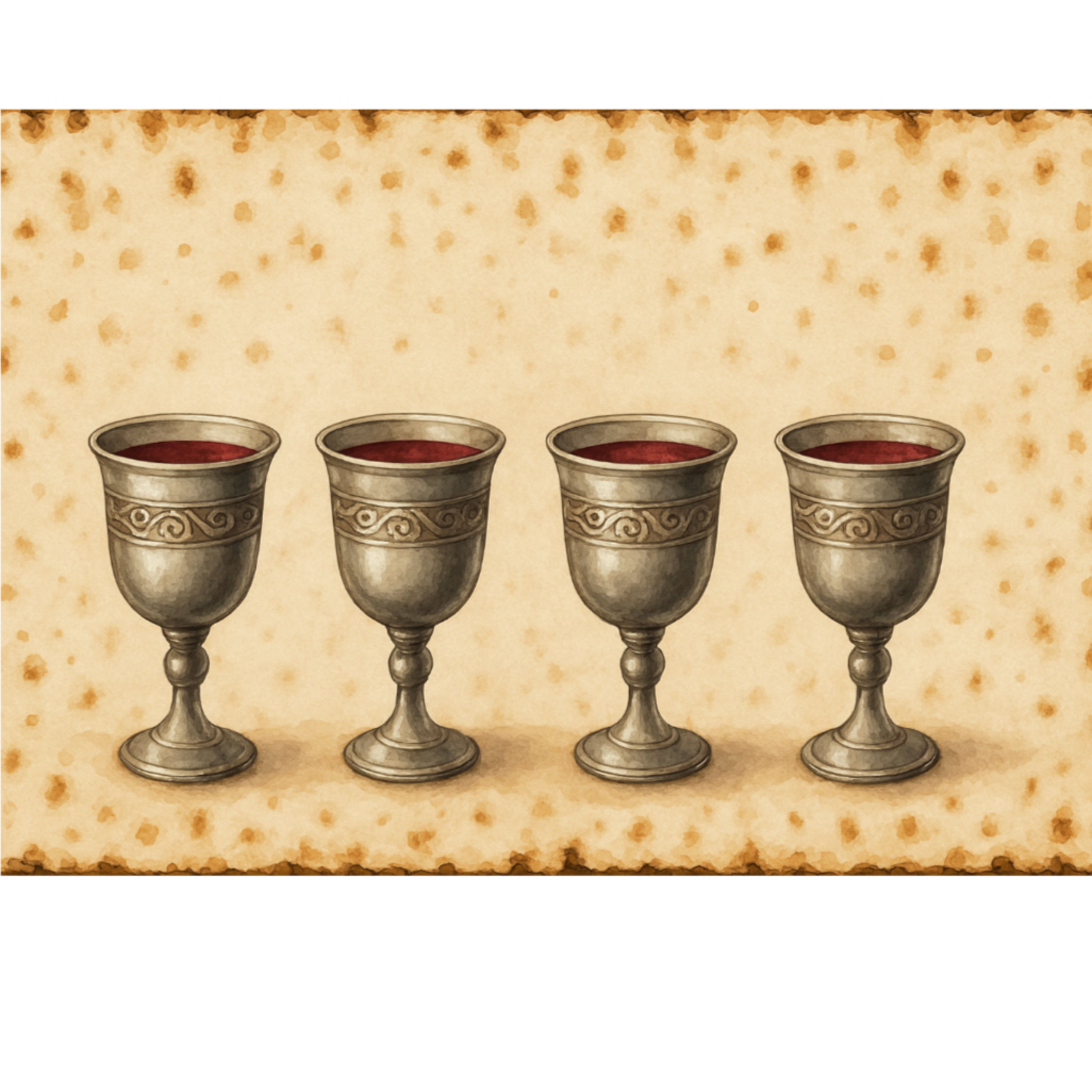 Durante o Seder, quatro taças de vinho são colocadas na mesa para cada pessoa tomar no decorrer da refeição