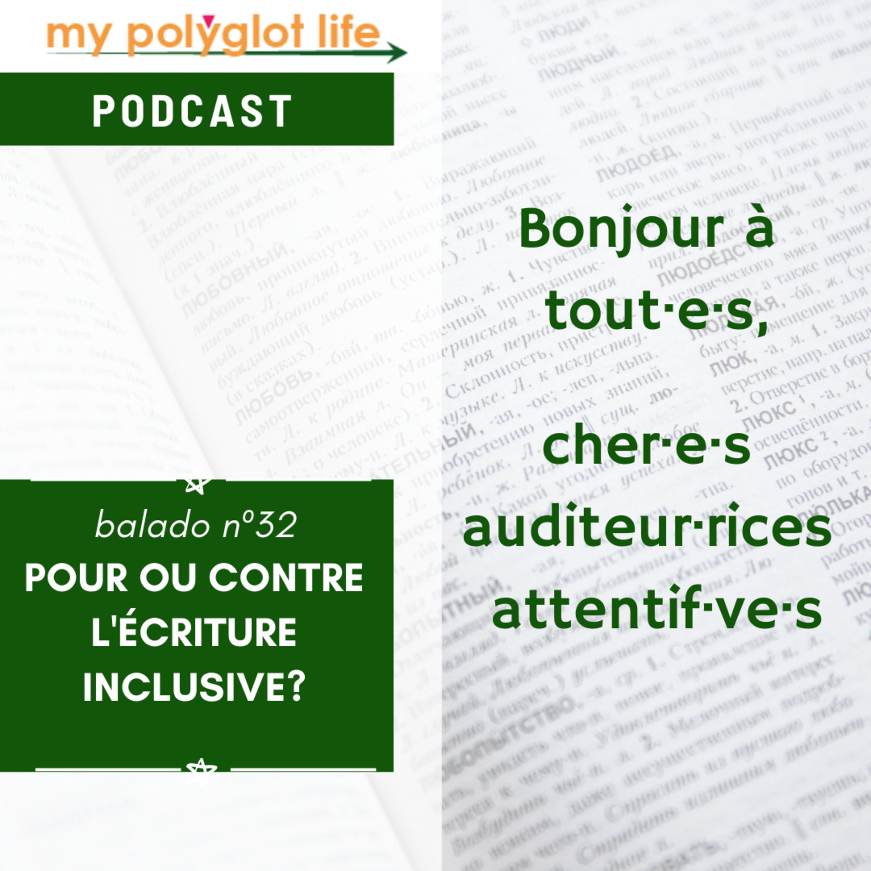 L'écriture inclusive, c'est ce que vous voyez sur l'image de couverture de l'épisode.