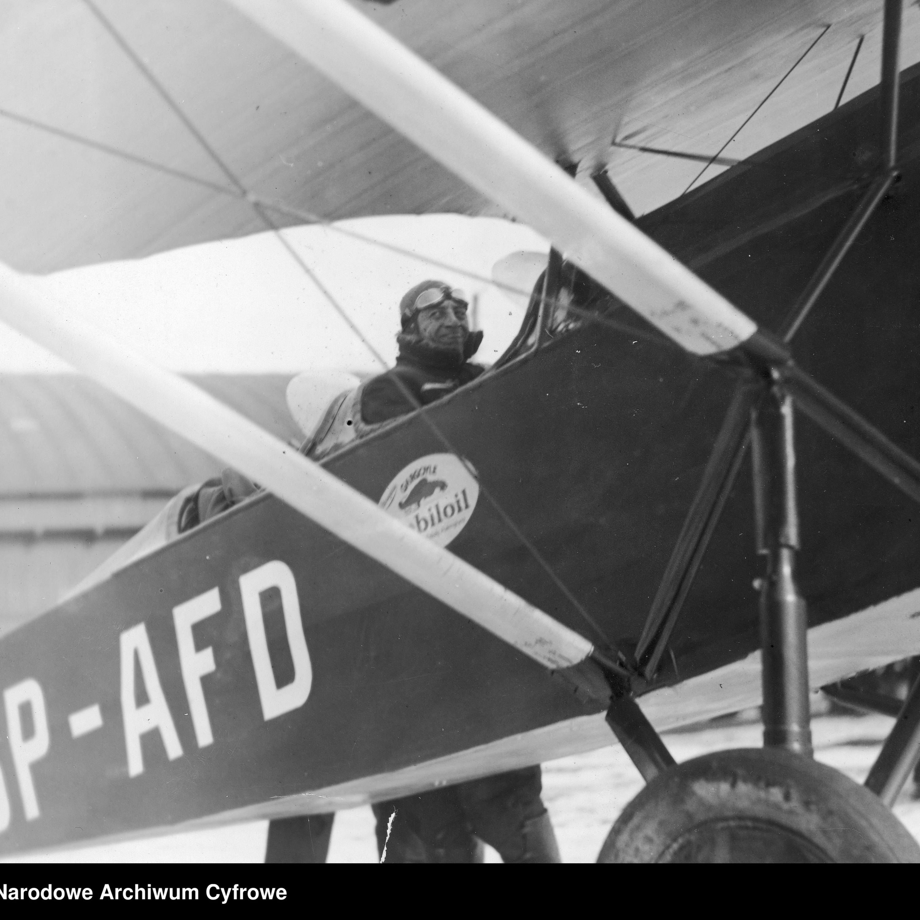 fot. Narodowe Archiwum Cyfrowe - Pilot Władysław Szulczewski startujący na pokładzie awionetki Lublin R-XIV (SP-AFD).