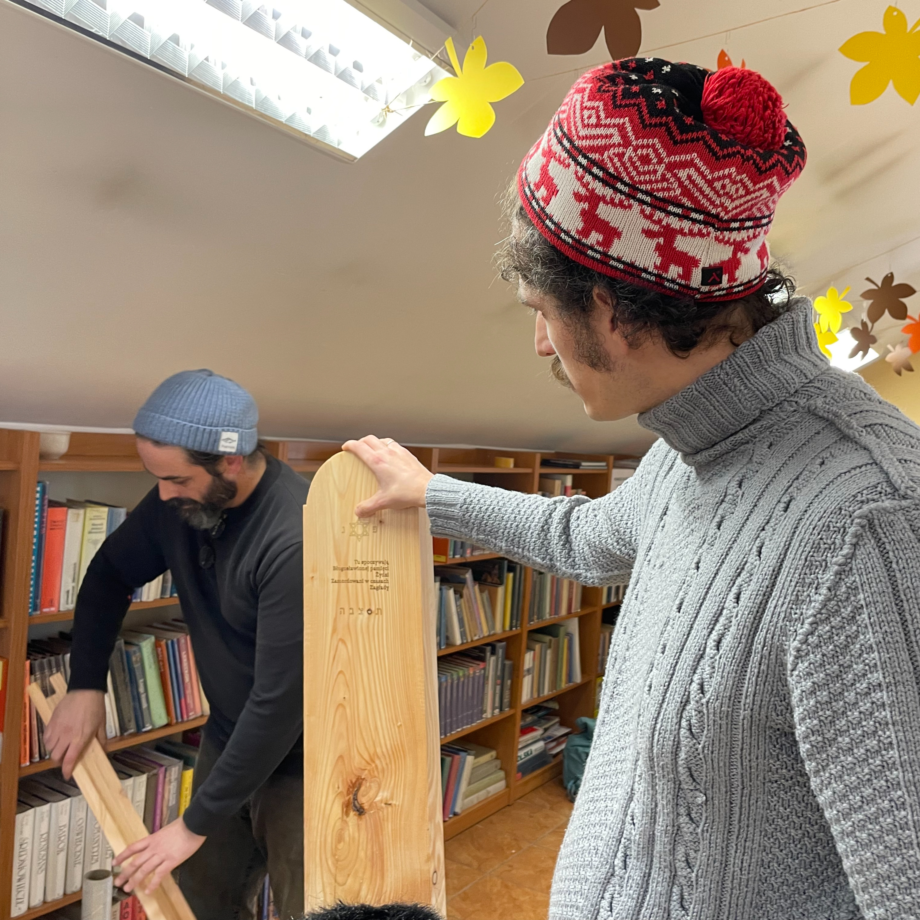 młodzieżą przy pomocy narzędzi stolarskich i lasera, przygotowali 2 takie macewy. Jedna z macew trafiła