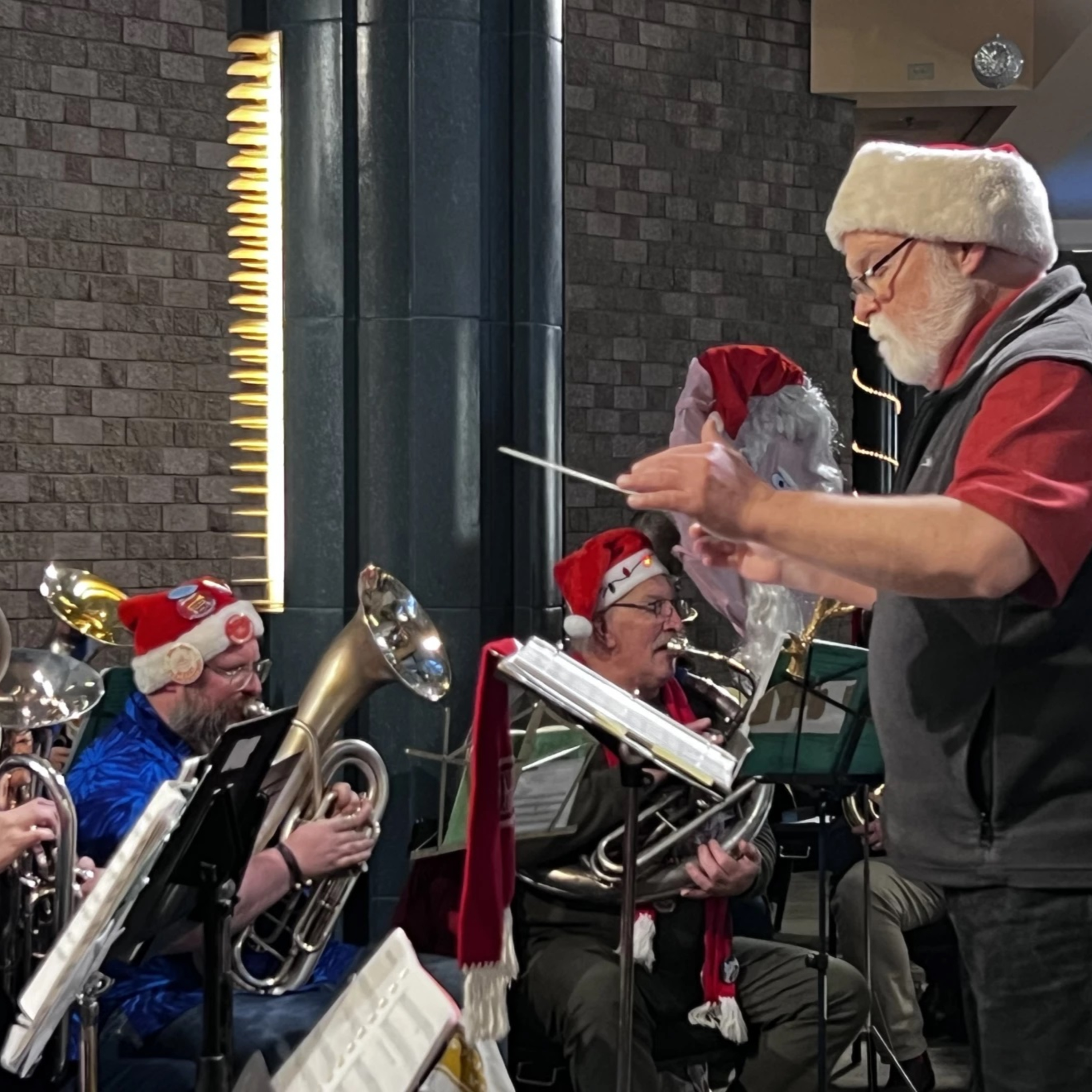Photo: Neal Haglund, a retired school band teacher, has conducted TubaChristmas for most of its 28 years in Anchorage. (Rhonda McBride/KNBA)
