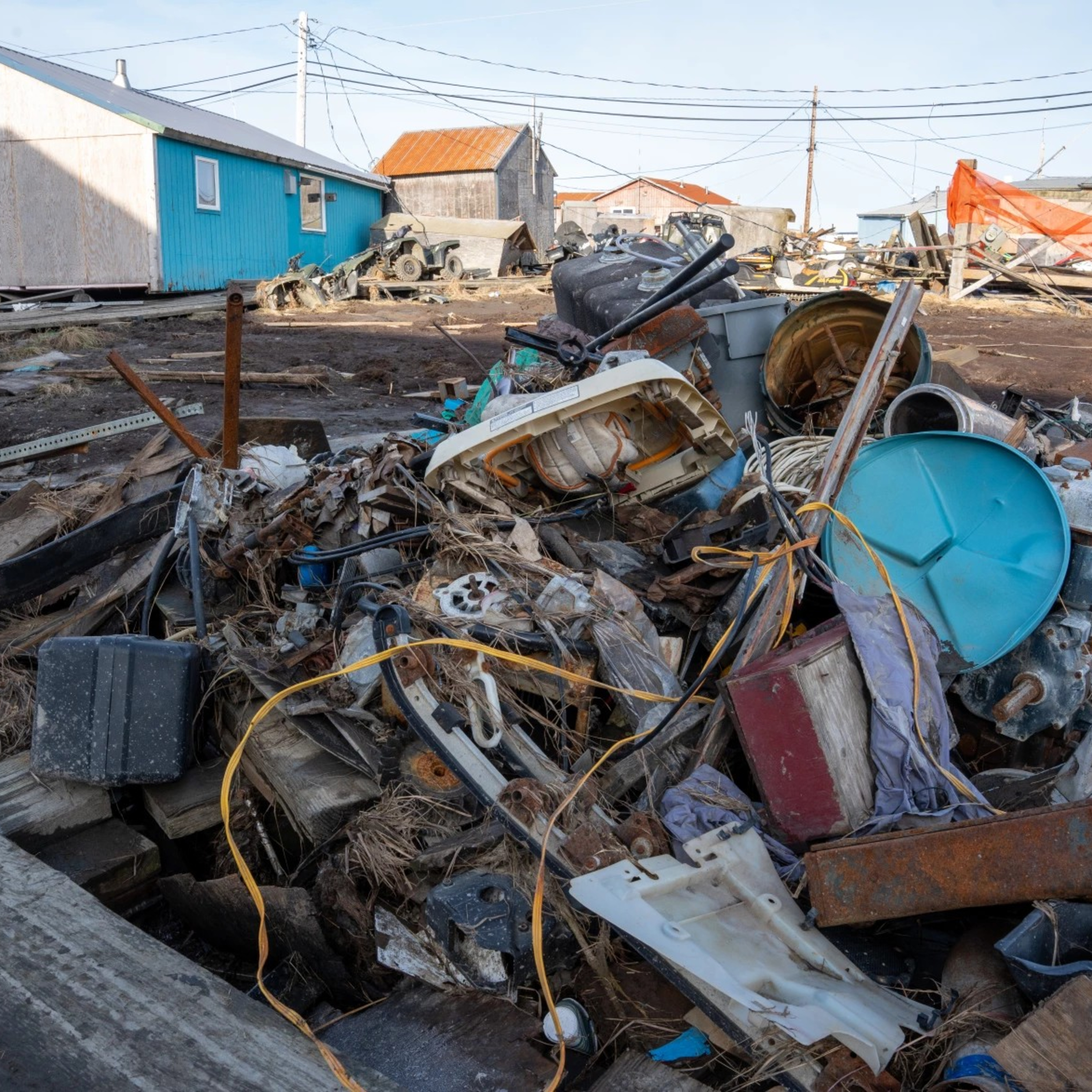 Photo: Debris sits in a pile in Kipnuk, Alaska on Oct. 19, 2025, a week after the remnants of Typhoon Halong brought catastrophic flooding and hurricane-force winds to the village.