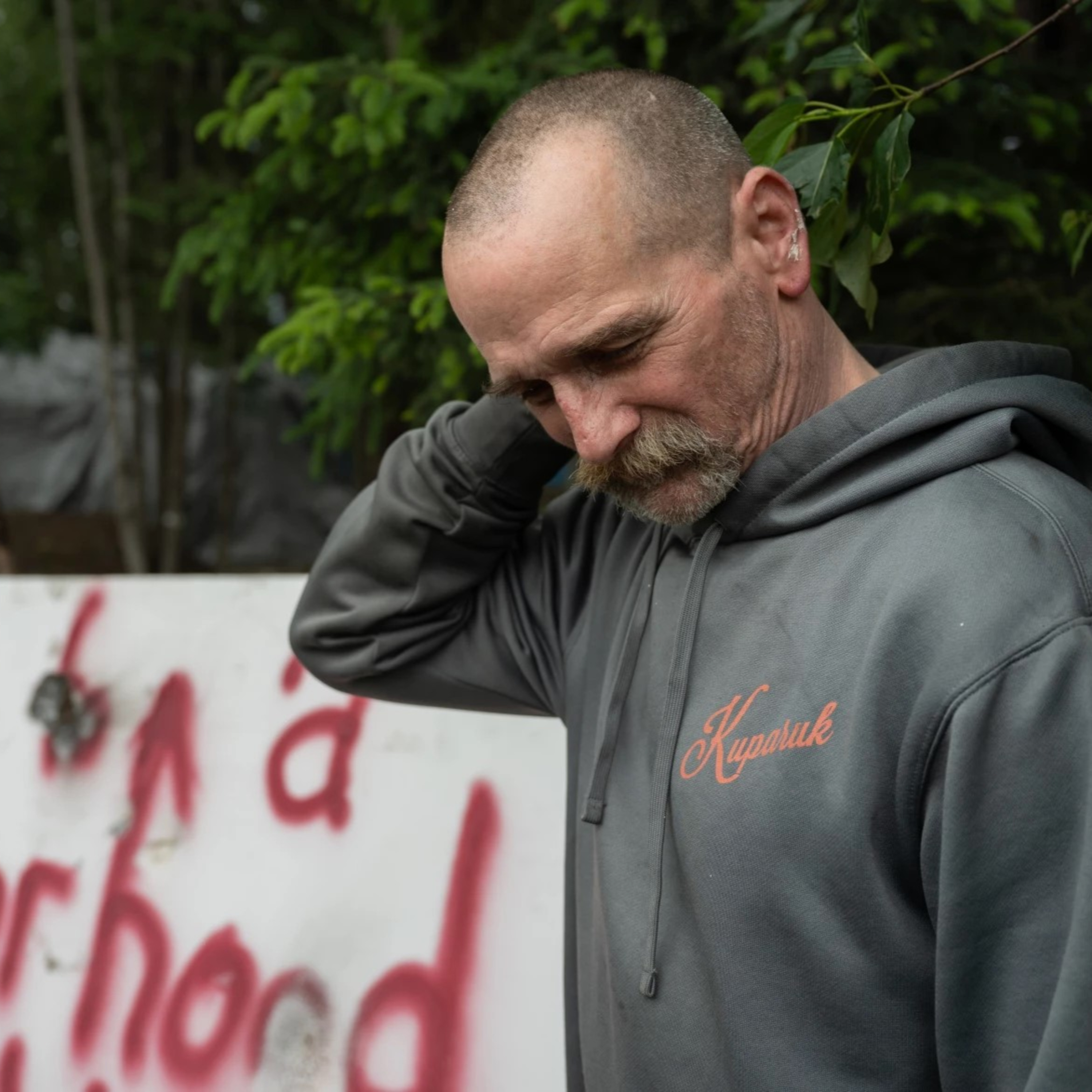 Photo: Brian Vaughn urged Anchorage police on Tuesday, June 17, 2025, to not clear the encampments. ( Matt Faubion/Alaska Public Media)