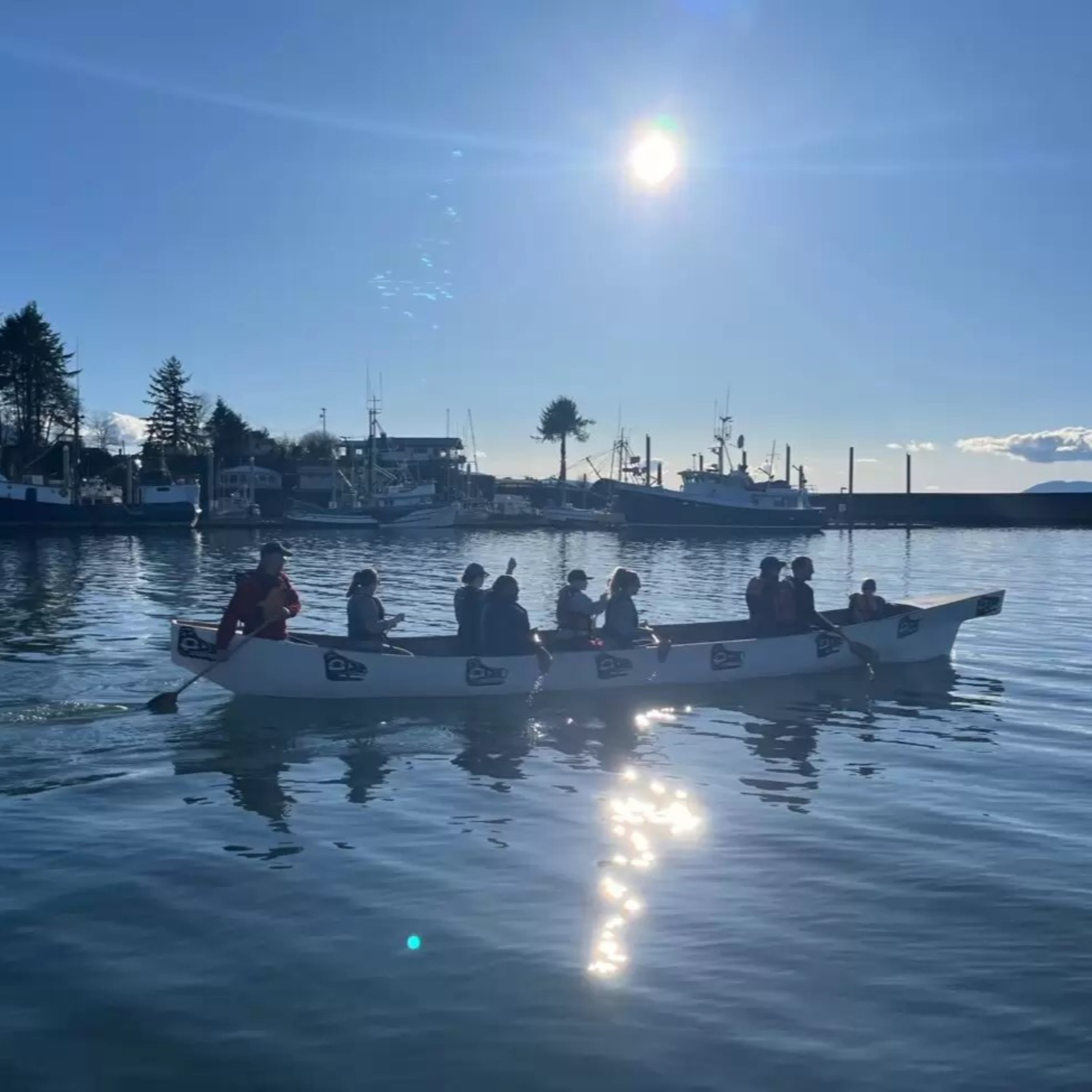 Photo: Paddlers practice on April 15, 2024 near Reliance Float Dock in Wrangell for the upcoming Journey to Celebration – A 150-nautical mile paddling journey from Wrangell to Juneau. (Colette Czarnecki/KSTK)