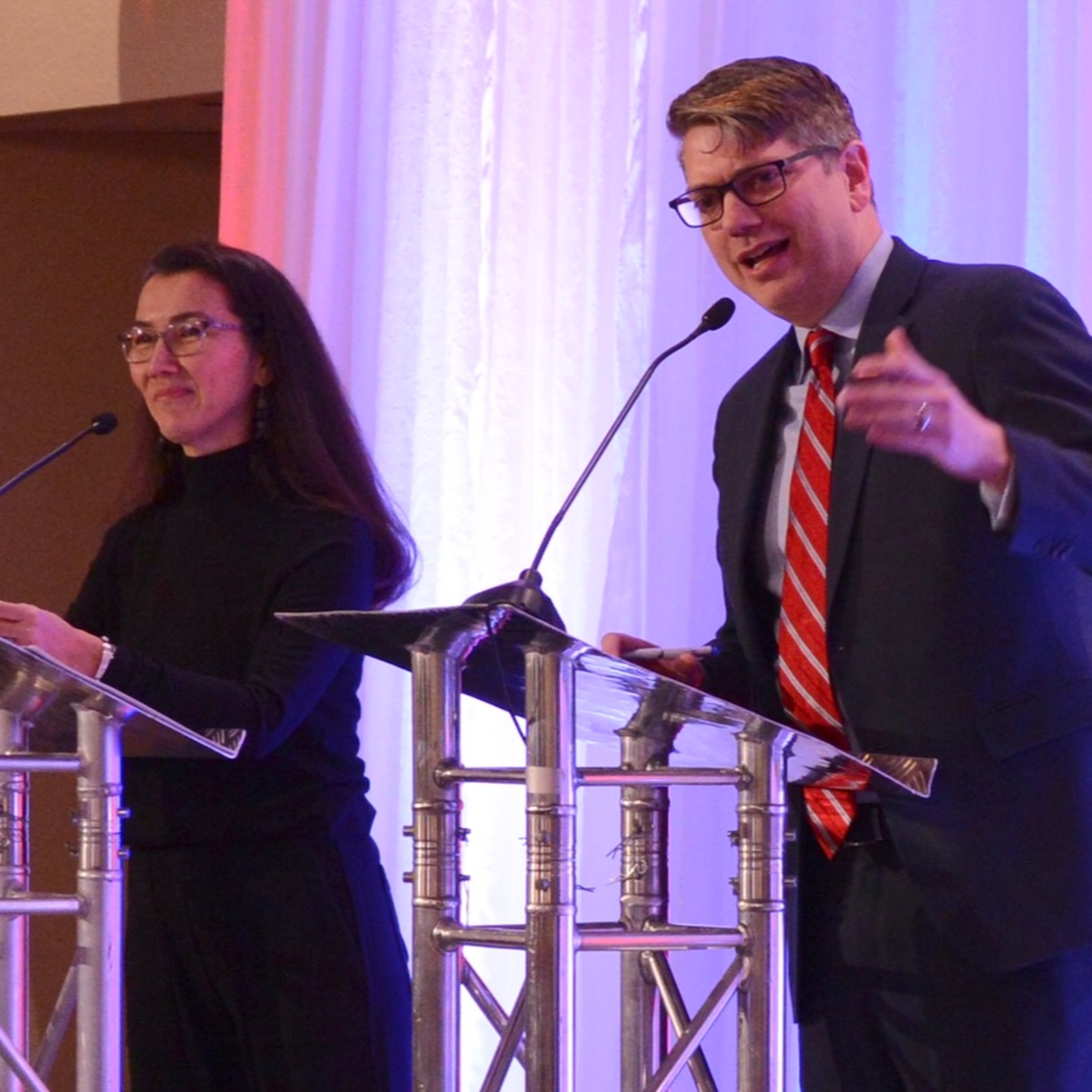 Photo: U.S. House Republican challenger Nick Begich III and Congresswoman Mary Peltola, a Democrat, presented their views Thursday at Debate for the State at Alaska Public Media.(Matt Faubion/Alaska Public Media)