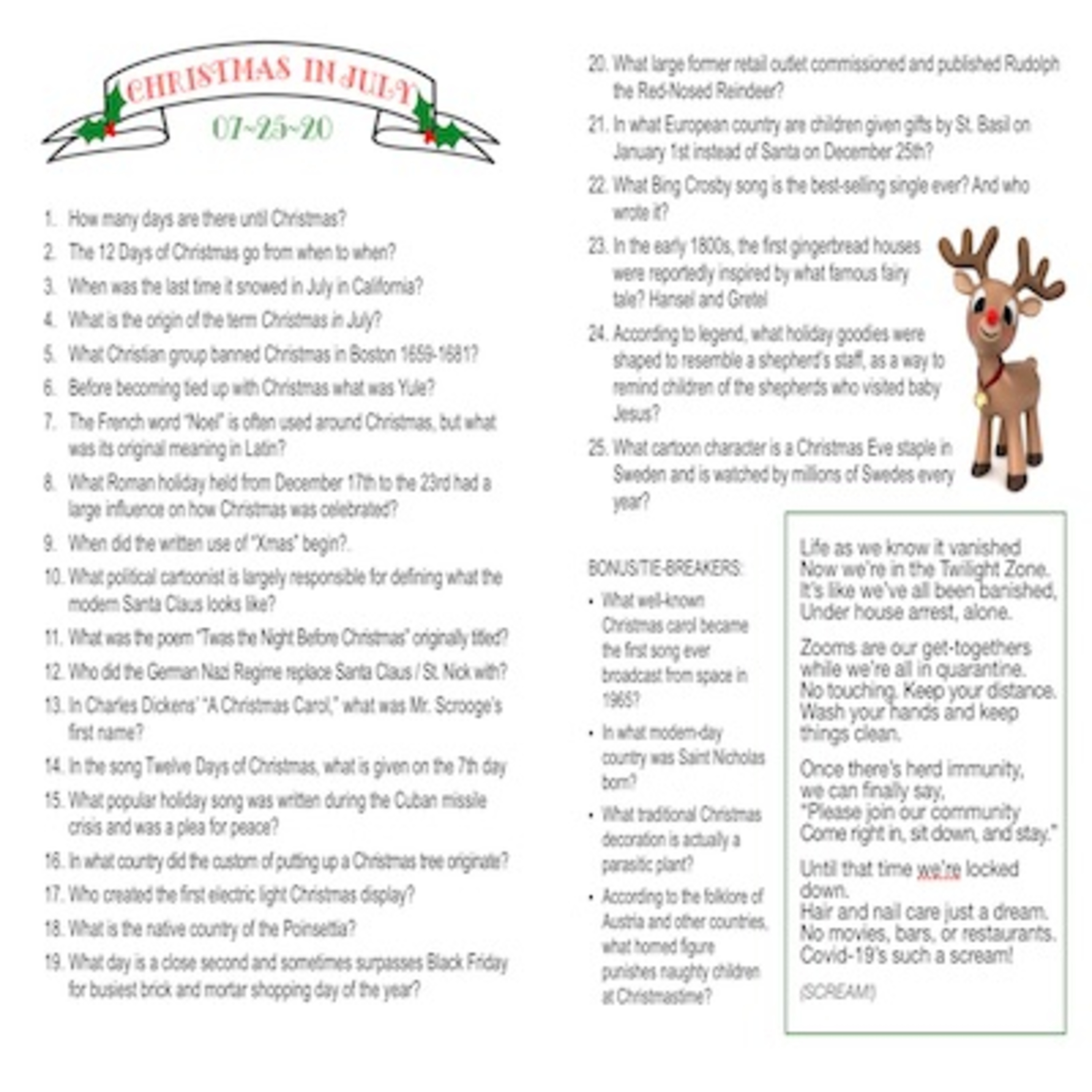Shout-outs to Jacki & Robert Clemens, Christine Craycroft, Cindy Freeman, and Cheryl Turner for their extra help &/or virtual participation in yesterday's wacky Christmas in July outside event