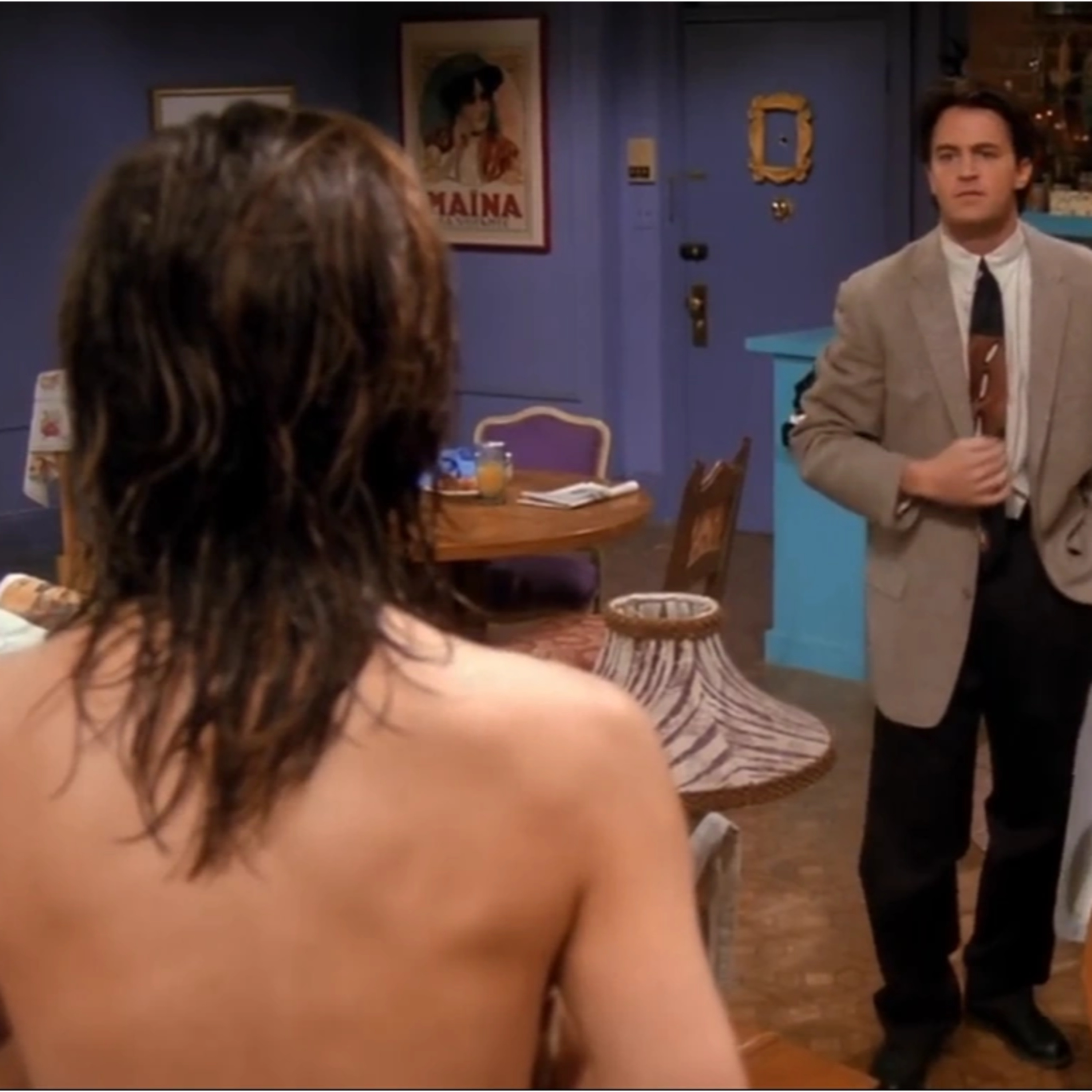 Chandler accidentally sees Rachel wandering around topless after