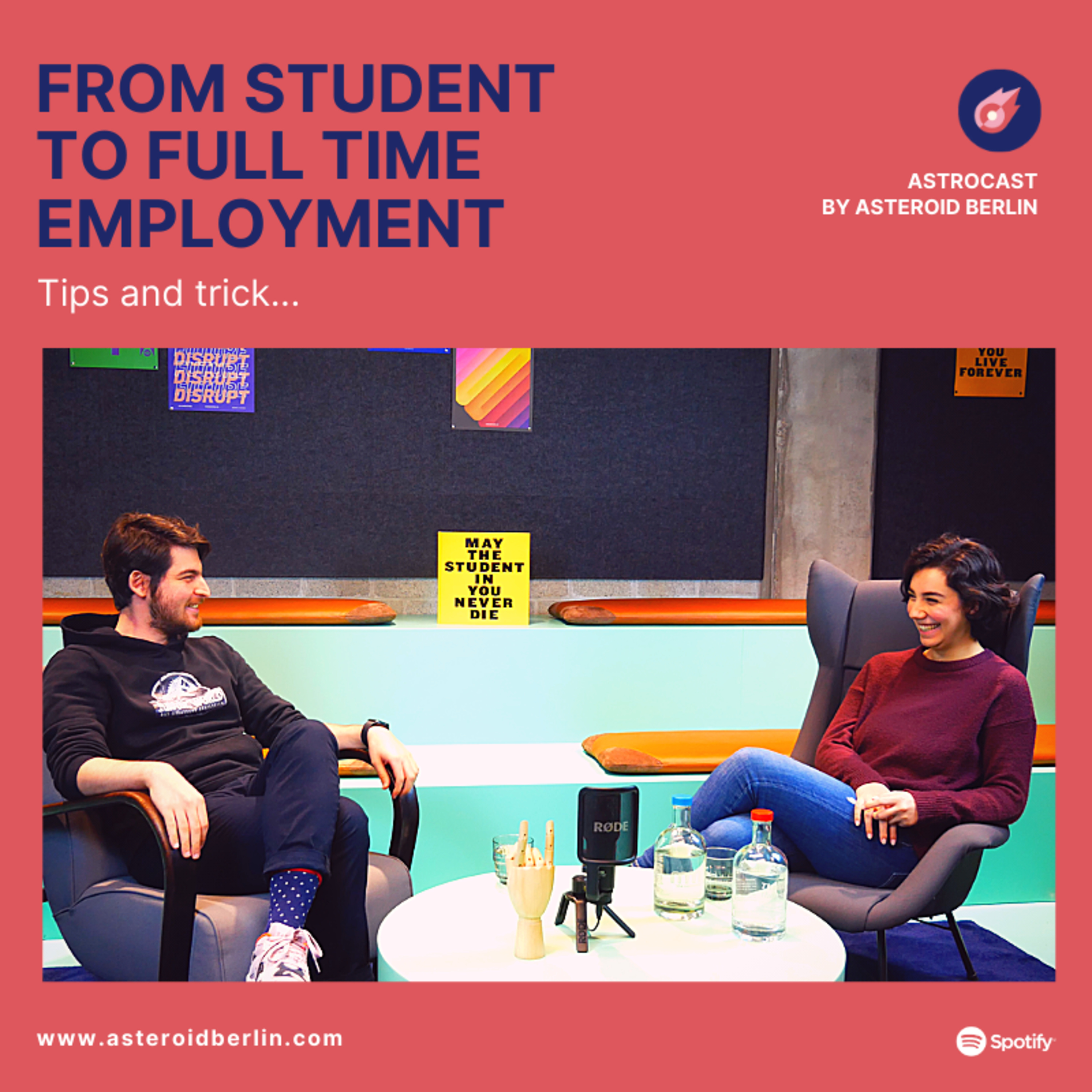 In this episode Clara and Amirali are talking about the transition between being a student to working 40hrs a week! Amirali recently graduated and working full-time and Clara is in her last semester and thinking about applying and changing her working-student job to a full-time employment.