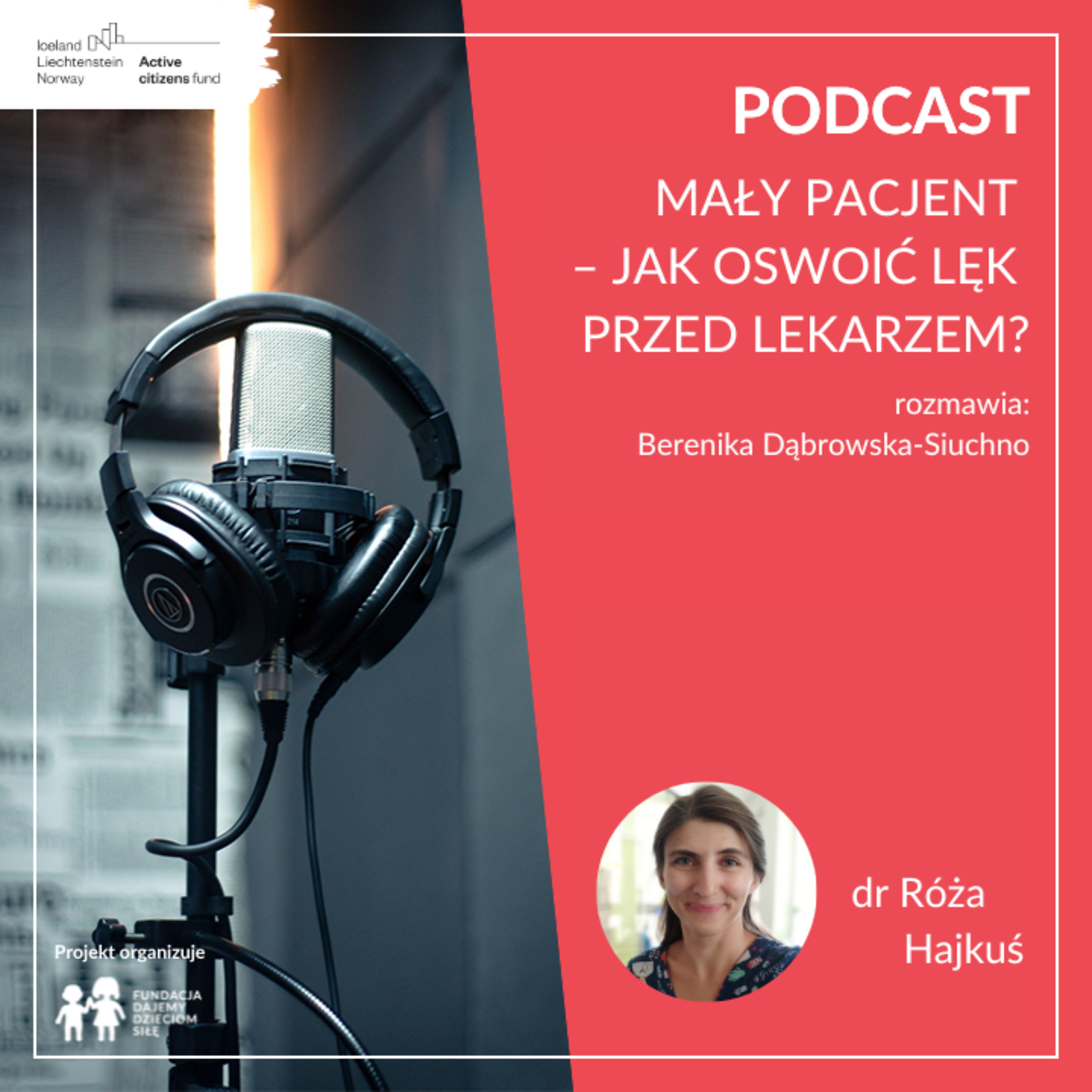 Do fundacyjnego studia zaprosiliśmy dr Różę Hajkuś – lekarkę, specjalistkę pediatrii. Z rozmowy dowiedzieliśmy się, czym jest Karta Praw Dziecka Pacjenta i jak ważna jest świadomość personelu medycznego, rodziców/opiekunów oraz dziecka w zakresie posiadanych uprawnień. Rozmawialiśmy o tym, jak sprawić, by dziecko jak najmniej bało się wizyty u lekarza, a kontakt z personelem medycznym w przychodni czy szpitalu nie był źródłem dodatkowego stresu u małych pacjentów i ich opiekunów. W podcaście rozmawiamy także o tym, co mogą zrobić rodzice, jeszcze przed wizytą, aby wesprzeć swoje dzieci i przygotować je do badań oraz innych zabiegów medycznych tak, by przebiegły one w bezpiecznych i komfortowych warunkach zarówno dla dzieci jak i dorosłych. Jak radzić sobie w sytuacji, gdy dziecko bardzo źle znosi wizyty u lekarza? Jakie elementy wpływają na atmosferę wizyt i jak powinna wyglądać współpraca personelu medycznego z opiekunami, by osiągnąć jak najlepsze wyniki leczenia dzieci?