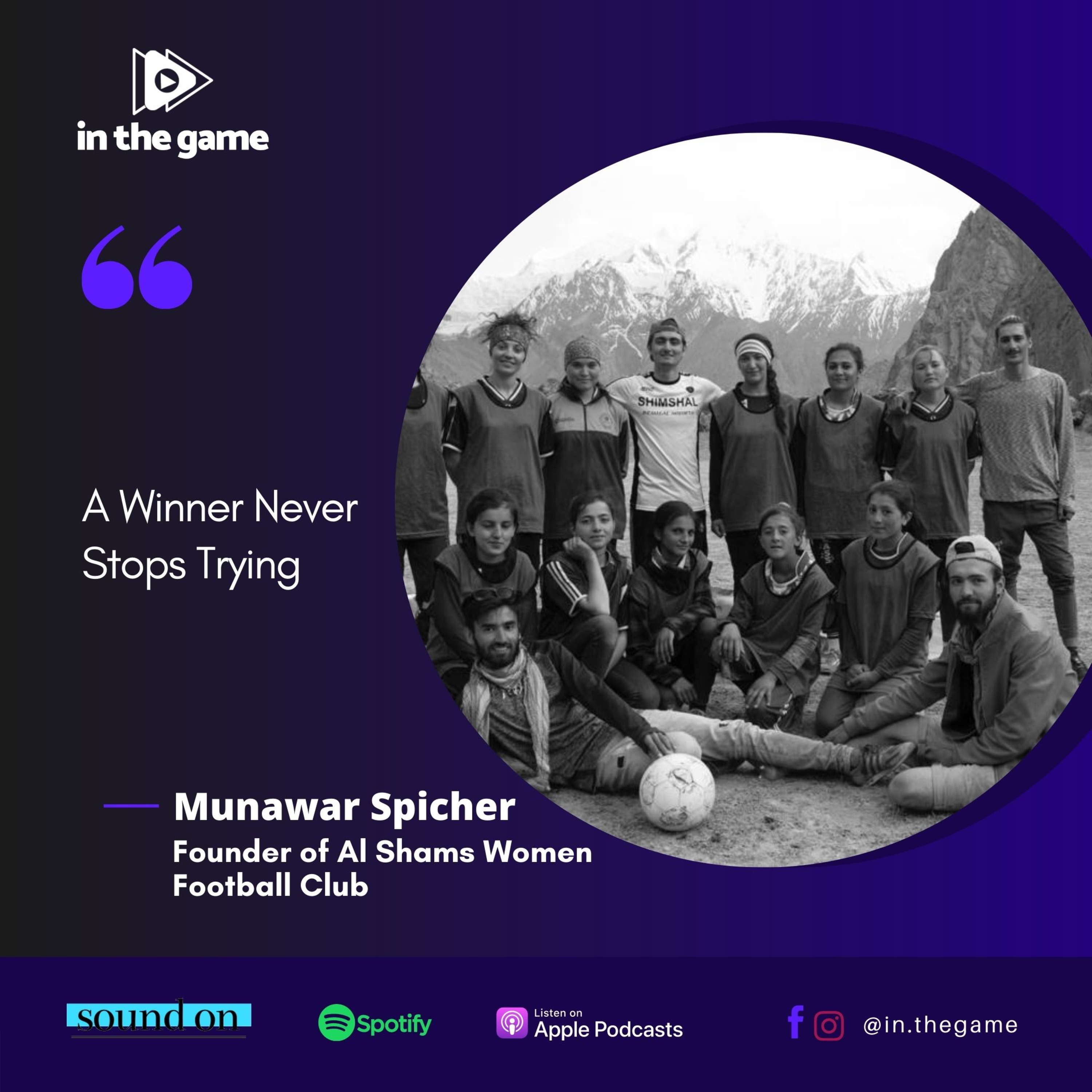 On In The Game Podcast this week our guest Munawar Shah talks about Al-Shams Women FC , a club that began in 2016 in the highly mountainous region known as the 'Valley of the Mountaineers' in the North of Pakistan. A team consisting mainly of young women between the ages of 12 and 24 who would otherwise be left behind due to the lack of opportunities and resources in the area. An ambitious and inspiring team who, in 2019, trekked for four hours through the mountainous terrain to play a 'highest altitude, gender-equality' football match. Truly a story that films are made of! If you can support a little, it would make a massive difference!! https://goget.fund/2YbunIn "Empowering women through the power of sport and creating opportunities for them" "Sports can change communities, can change the world!" "Football teaches you a lot, not just playing but passion and how to reach your goals"