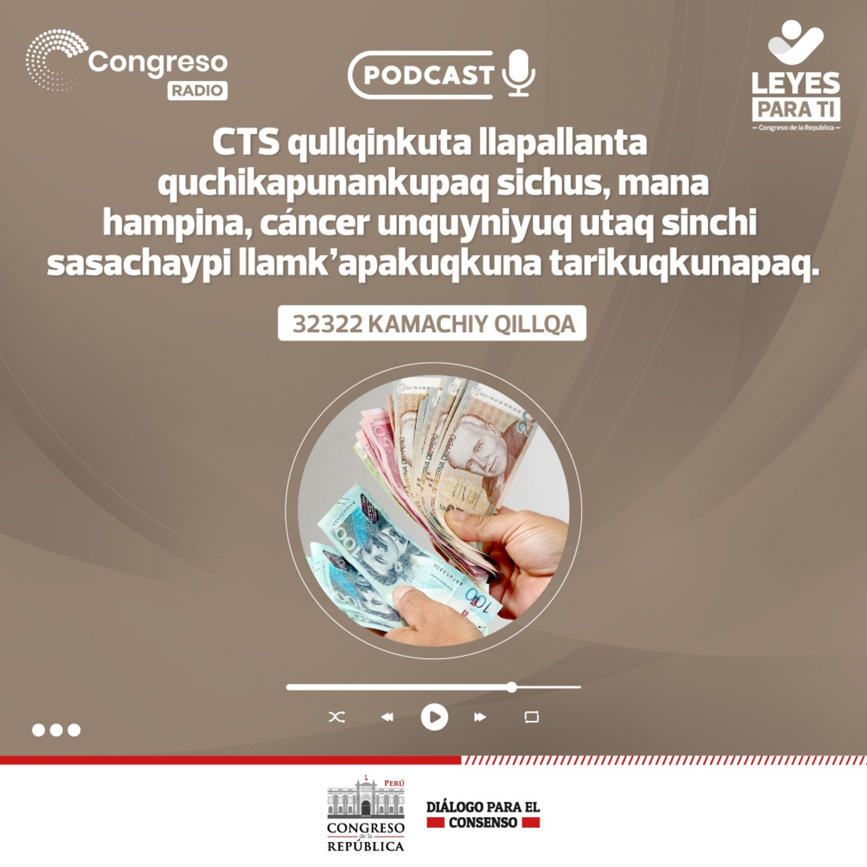 32322 Kamachiy Qillqa Kamachiy Qillqa 650 nisqapi hukchasqa, Compensación por Tiempo de Servicios nisqapi, 100% qispiyta atichiy, unquy sinchi o cáncer diagnosticosqa runakunapaq, chaymantaq llaki qochasqapi yanapanapaq.