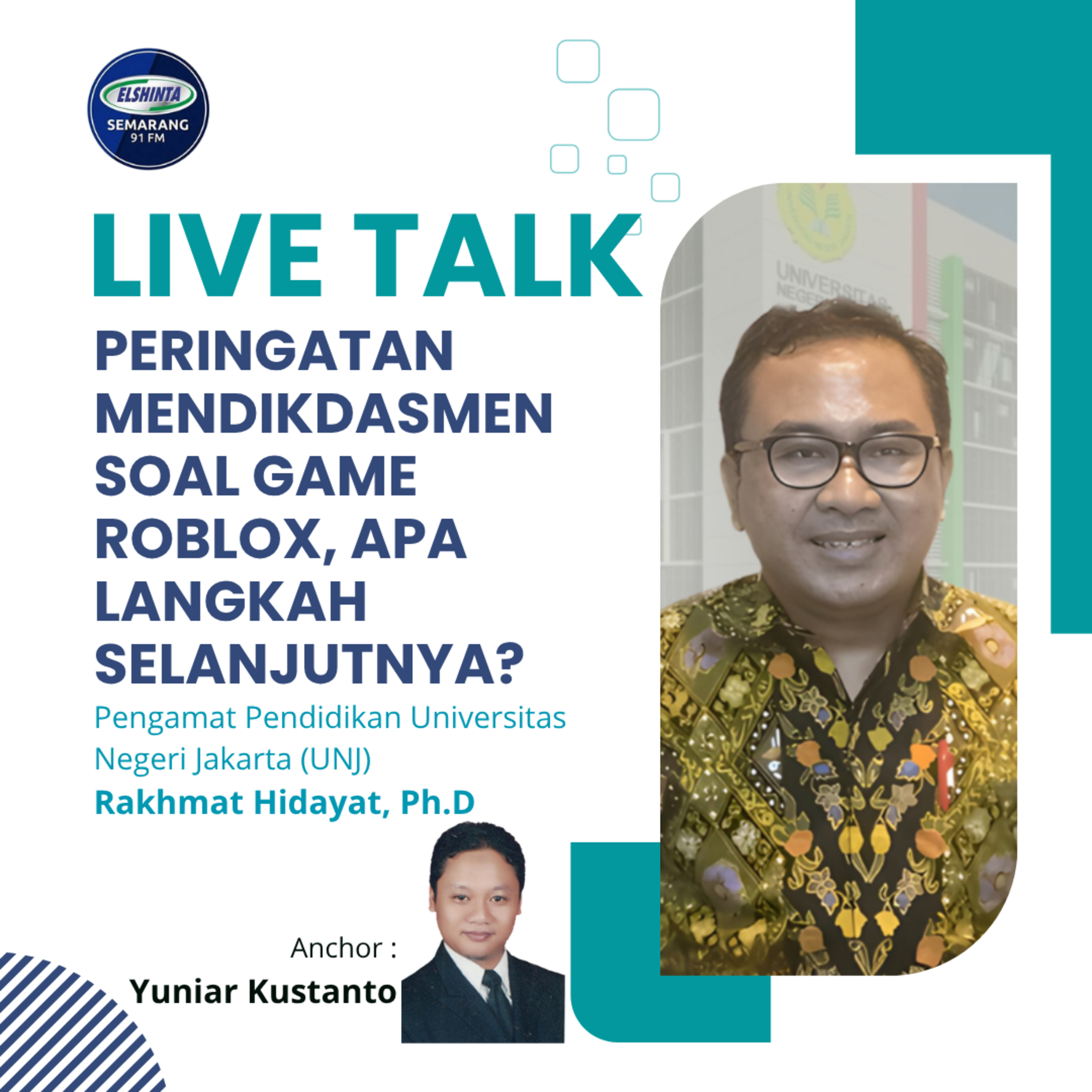Narasumber : Ketua Dewan Pakar Perhimpunan Pendidikan dan Guru (P2G) sekaligus pengamat Pendidikan Universitas Negeri Jakarta (UNJ)