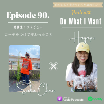 エピソード100までのカウントダウン!90話目は受講生のさくちゃんにきてもらいました!コーチングってなかなかわかりにくいし、何がどう影響があるかわからないけど私の受講生の体験談をお話ししていただきました!今どんな状態でも変われる。でも1人じゃ限界がある。そう言う時人に頼ってもいいよね。って思えるエピソードです!