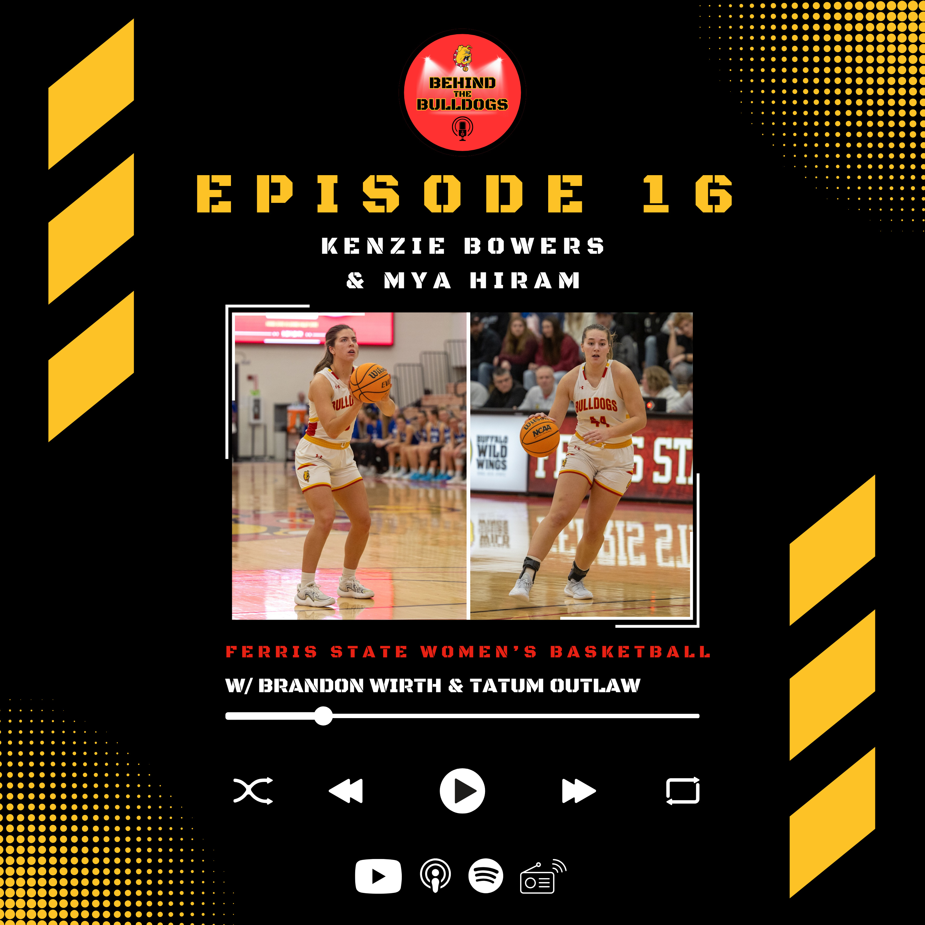 Brandon and Tatum hop back on the hardwood for Episode 16, as they are joined by Mya Hiram and Kenzie Bowers of Ferris State Women's Basketball to chat about the upcoming weekend games, life on the road to finish the season, and fun memories from last year's amazing Final 4 season.