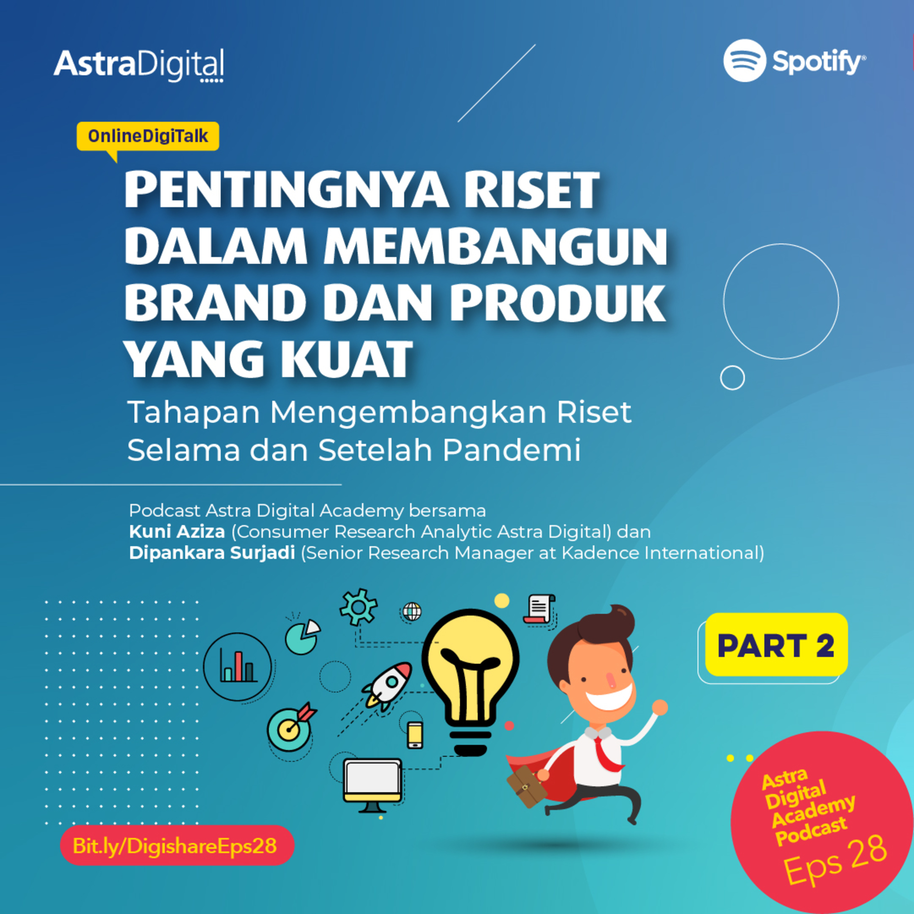 Melanjutkan diskusi episode 27 sebelumnya, di part 2 ini, Dipankara Surjadi membagikan tips dan trik dalam menjalankan riset, terutama di era pandemi ini; apa saja yang harus dilakukan dan dipersiapkan agar riset tetap berjalan lancar sehingga brand bisa mendapatkan insight dan mengetahui kemauan konsumennya. Yuk, simak kelanjutan episode riset ini!