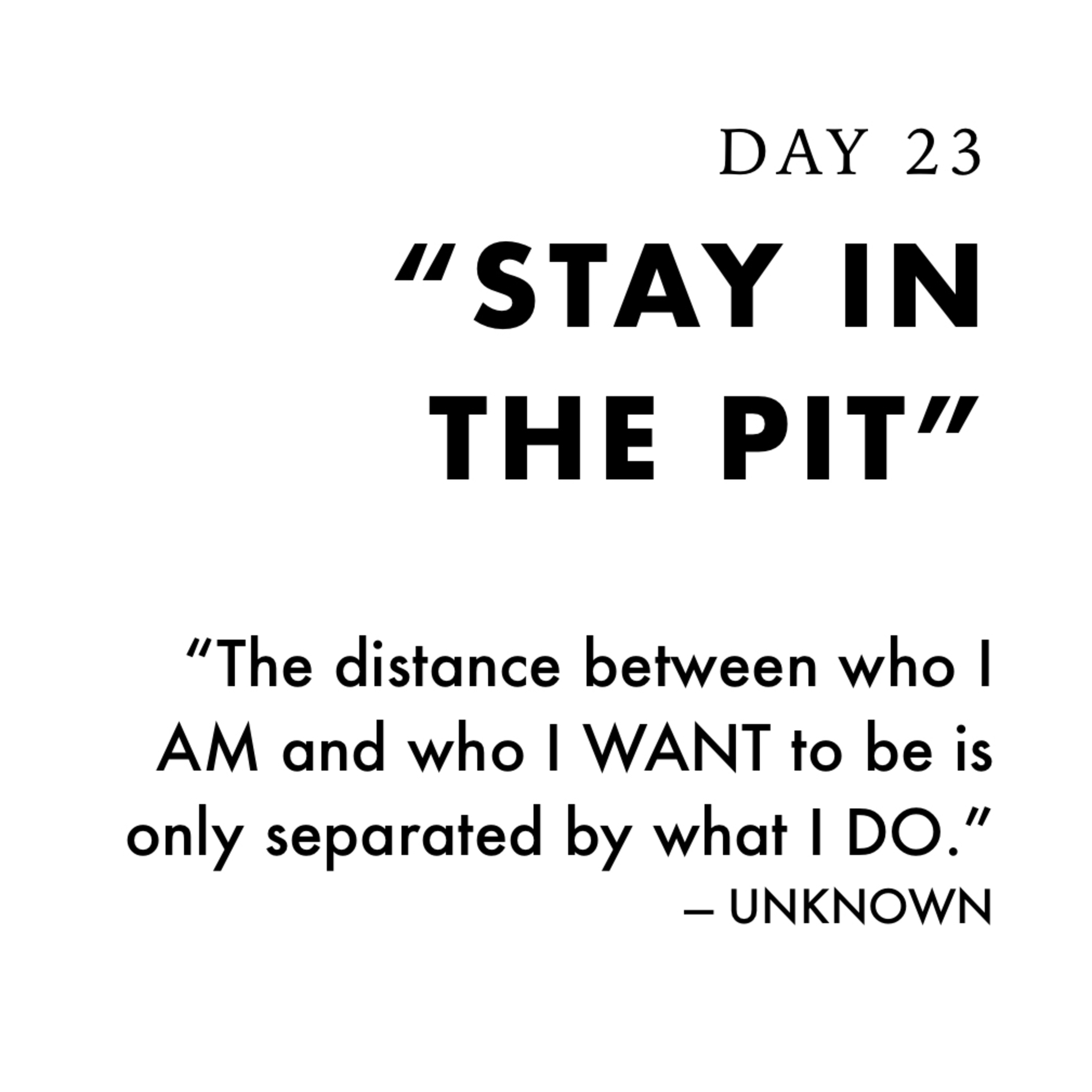 Day 23 of Be More Today Project 40 charges you to Stay In The Pit and begins the preparation phase of our journey to greatness. For more health tips, visit www.bemoretoday.com to purchase our book and to continue your Steps 2 Greatness to be the best version of you.