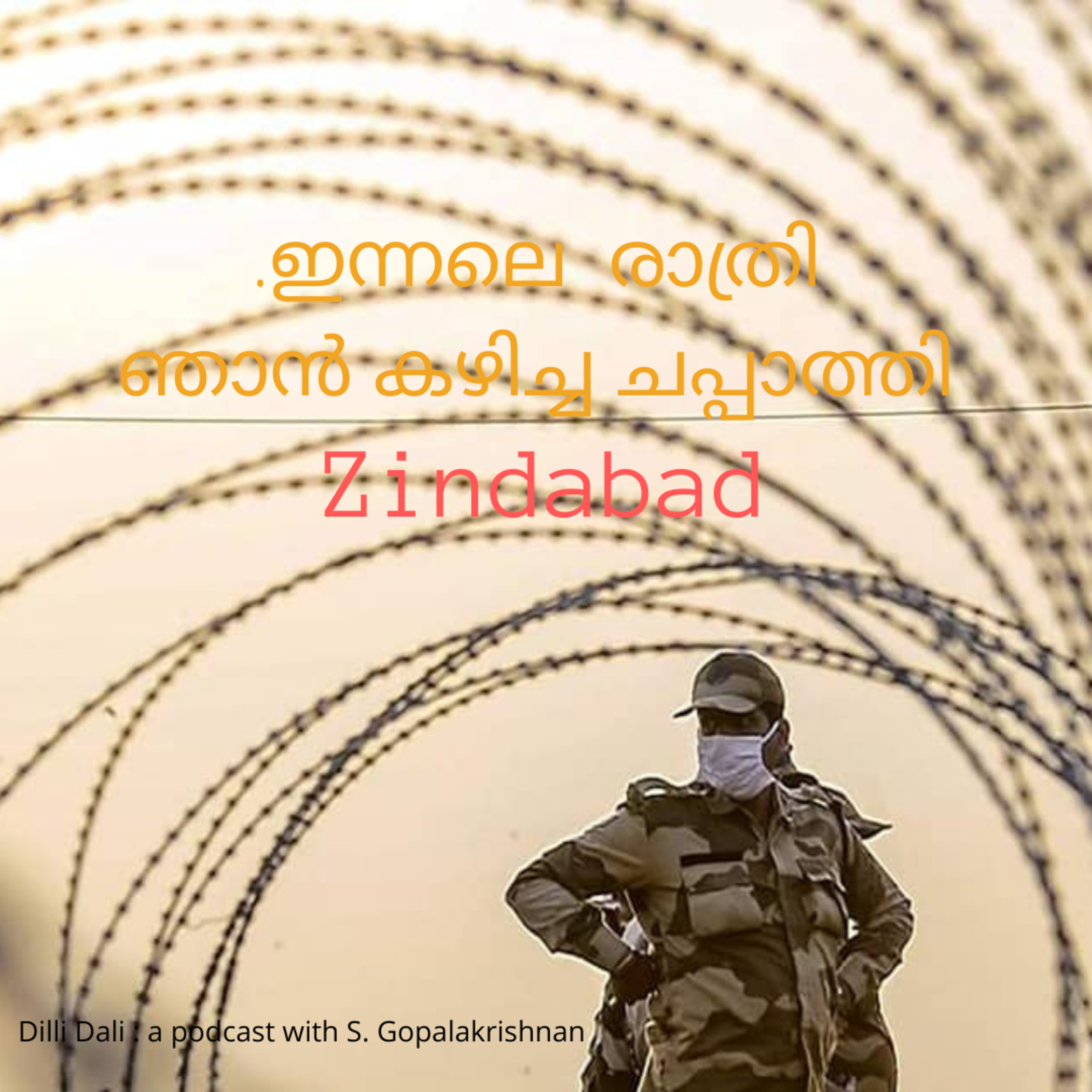 തിരികെ വന്ന് തീൻ മേശയിൽ അത്താഴത്തിന് പഞ്ചാബിലെ വയലിൽ നിന്നു വന്ന ഗോതമ്പിന്റെ ചപ്പാത്തികൾ കരയിൽ പിടിച്ചിട്ട മീനിനെ പ്പോലെ പിടഞ്ഞു ....പകൽ അതിർത്തിയിൽ കേട്ട ഒരു ഗാനമുണ്ട്. വാഹ് ഗുരു ..ഹരേ റാം ...അള്ളാ ഹു ....സിന്ദാബാദ് ....സിന്ദാബാദ് .....ഞാൻ അത് കൂടെ പാടി . ചപ്പാത്തി അപ്പോഴാണ് പിടച്ചിൽ നിർത്തിയത് .