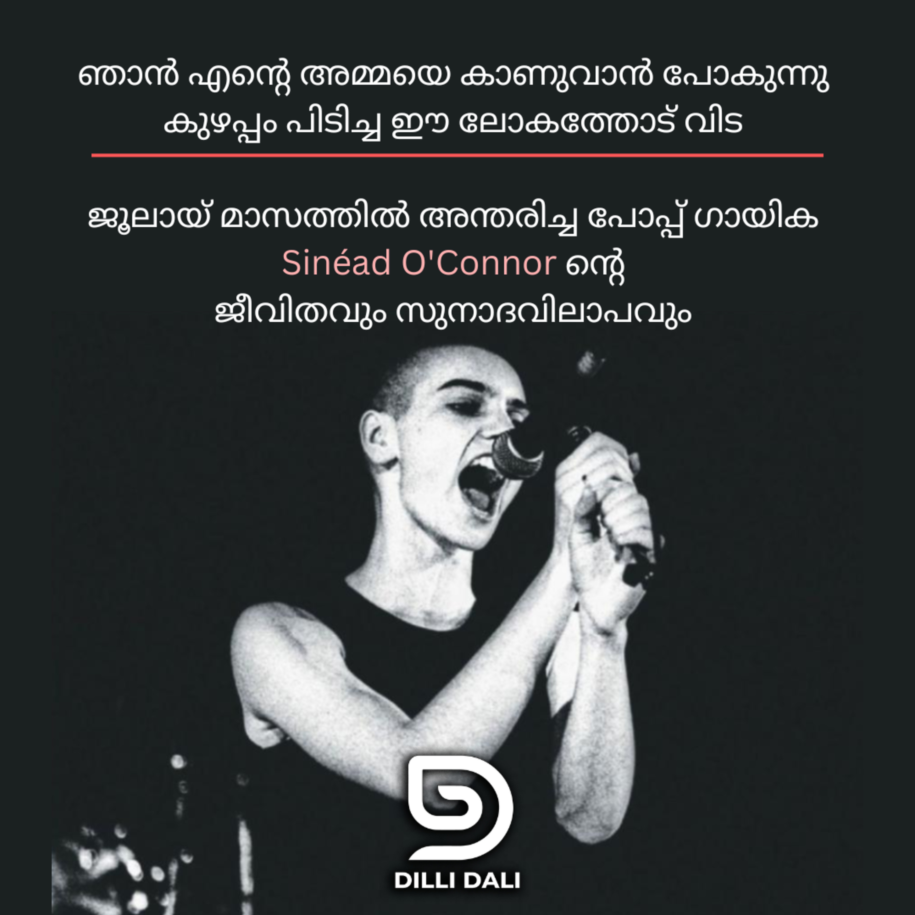 'ഞാൻ എൻ്റെ അമ്മയെ കാണുവാൻ പോകുന്നു, കുഴപ്പം പിടിച്ച ലോകത്തോട് വിട ' എന്ന ദില്ലി -ദാലി പോഡ്കാസ്റ്റിലേക്ക് സ്വാഗതം . കഴിഞ്ഞയാഴ്ച അന്തരിച്ച പോപ്പ് ഗായിക Sinéad O'Connor നുള്ള ആദരമാണ് ഇത് .