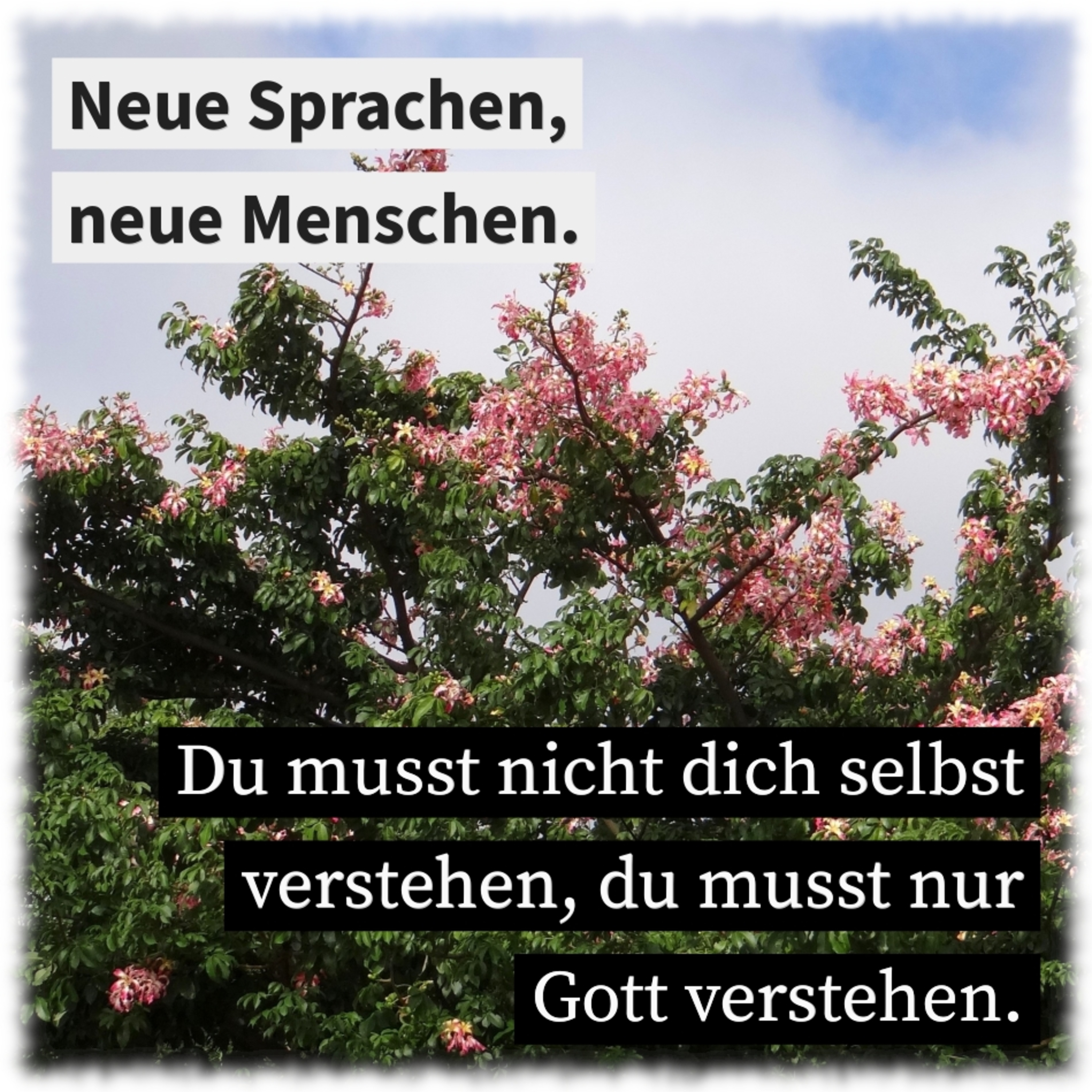 Neue Sprachen, neue Menschen. Du musst nicht dich selbst verstehen, du musst nur Gott verstehen. Bei Gott wird niemand vergessen.