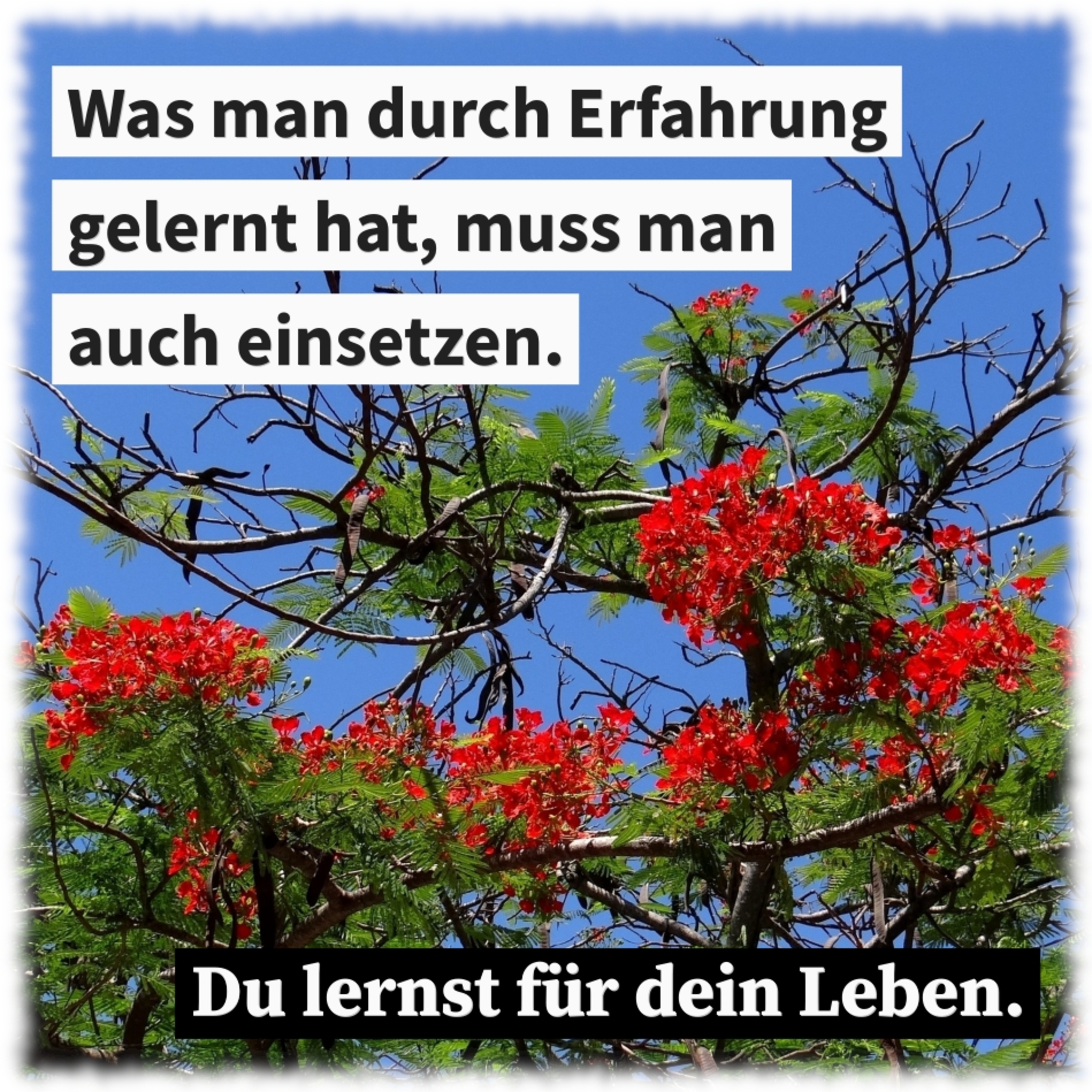 Was man durch Erfahrung gelernt hat, muss man auch einsetzen. Du lernst für dein Leben. Wissen allein reicht nicht aus, Leben braucht Planung.