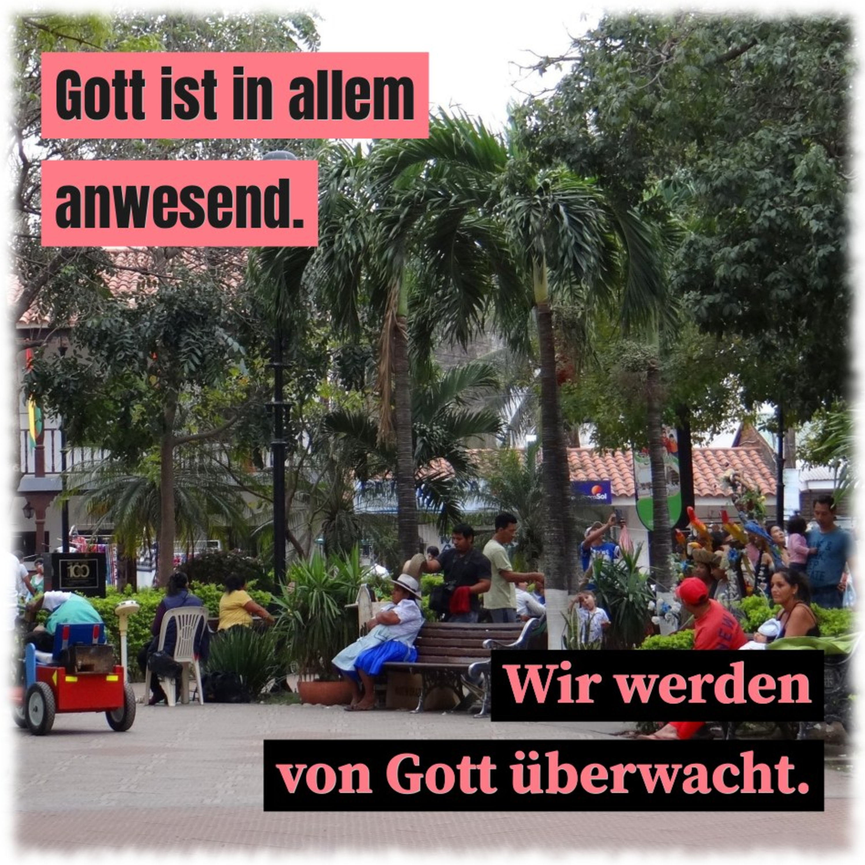 Gott ist in allem anwesend. Wir werden von Gott überwacht. Gott umgibt mich von allen Seiten. Dort, wo du stehst, ist der Mittelpunkt der Erde.