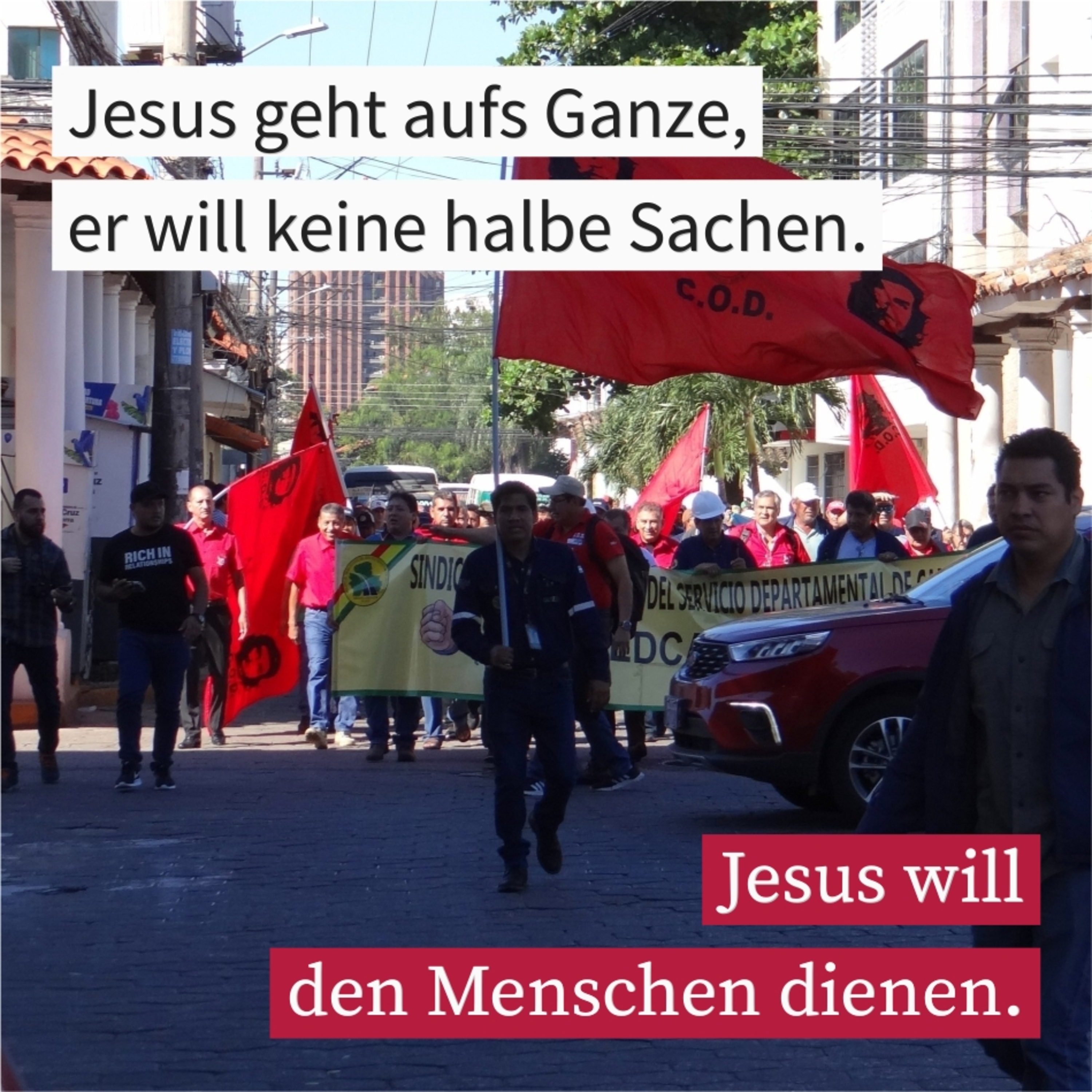 Jesus geht aufs Ganze, er will keine halbe Sachen. Jesus will den Menschen dienen.