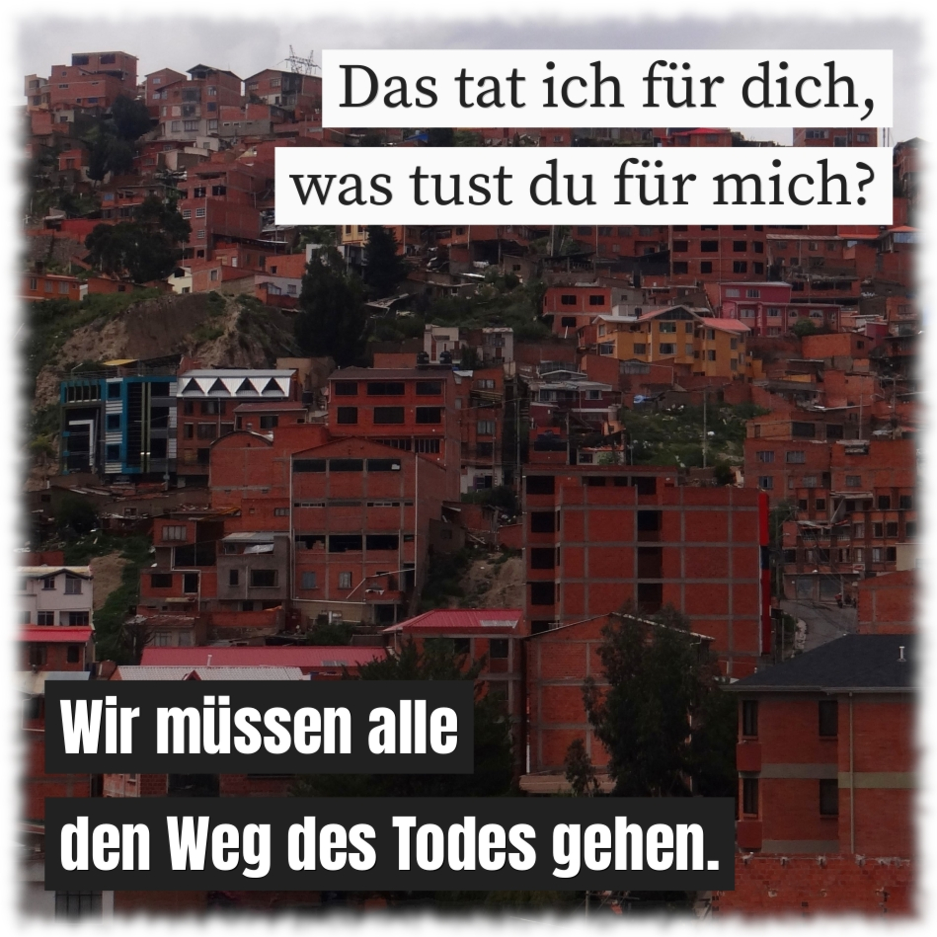 Das tat ich für dich, was tust du für mich? Wir müssen alle den Weg des Todes gehen.