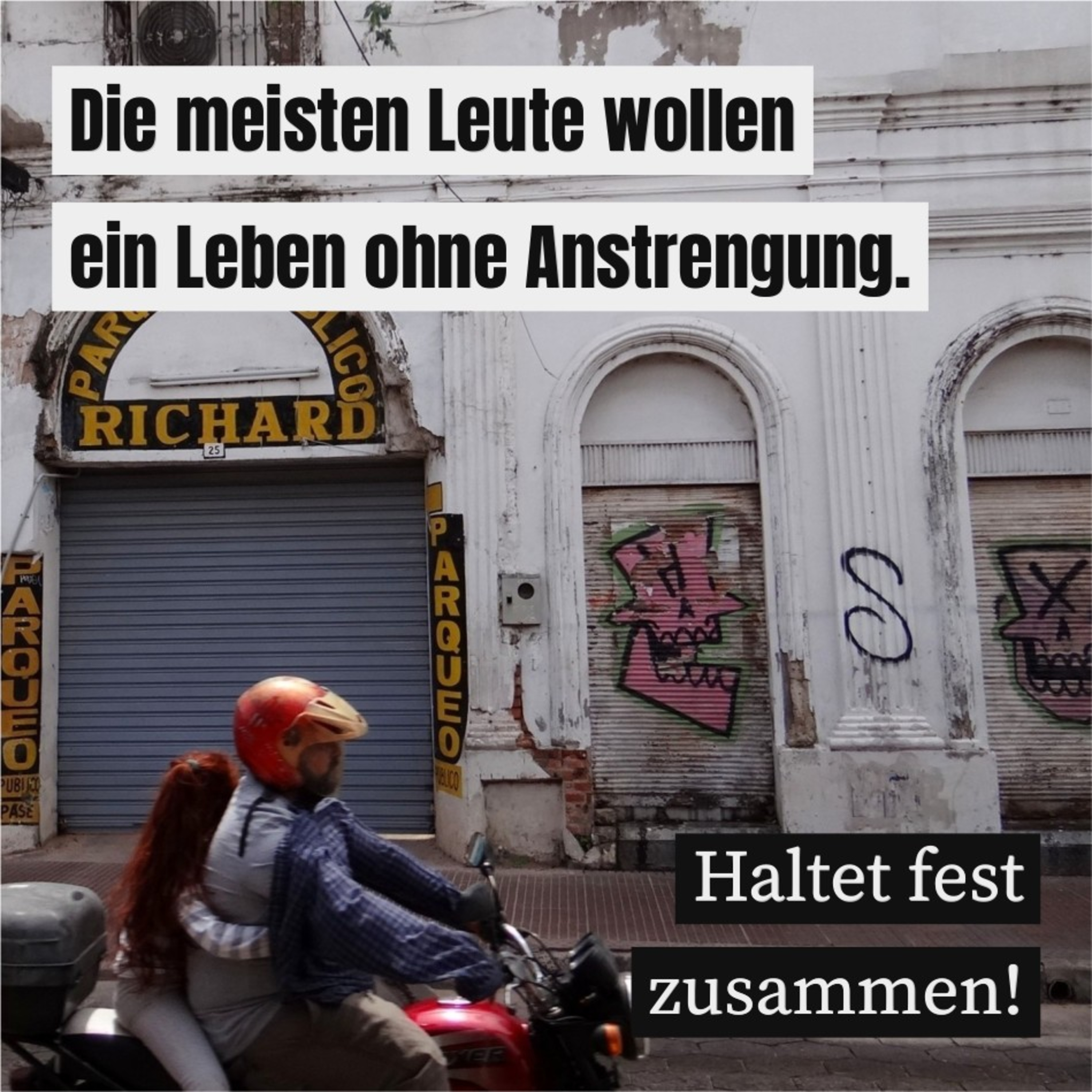 Die meisten Leute wollen ein Leben ohne Anstrengung. Haltet fest zusammen! Menschen brauchen die Atmosphäre der Liebe.