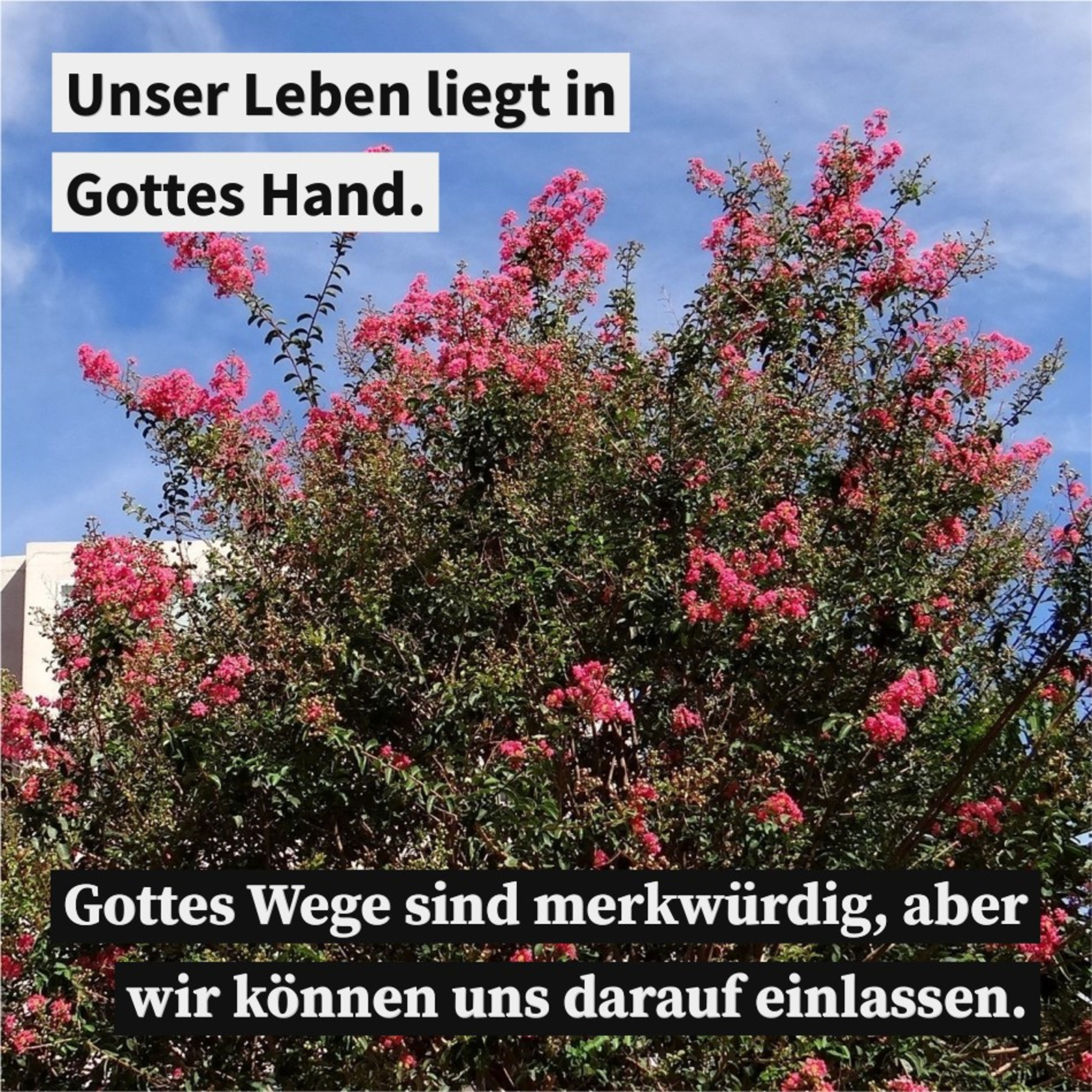 Unser Leben liegt in Gottes Hand. Gottes Wege sind merkwürdig, aber wir können uns darauf einlassen. Sei viel mehr anderen Menschen eine Hilfe und ein Segen.