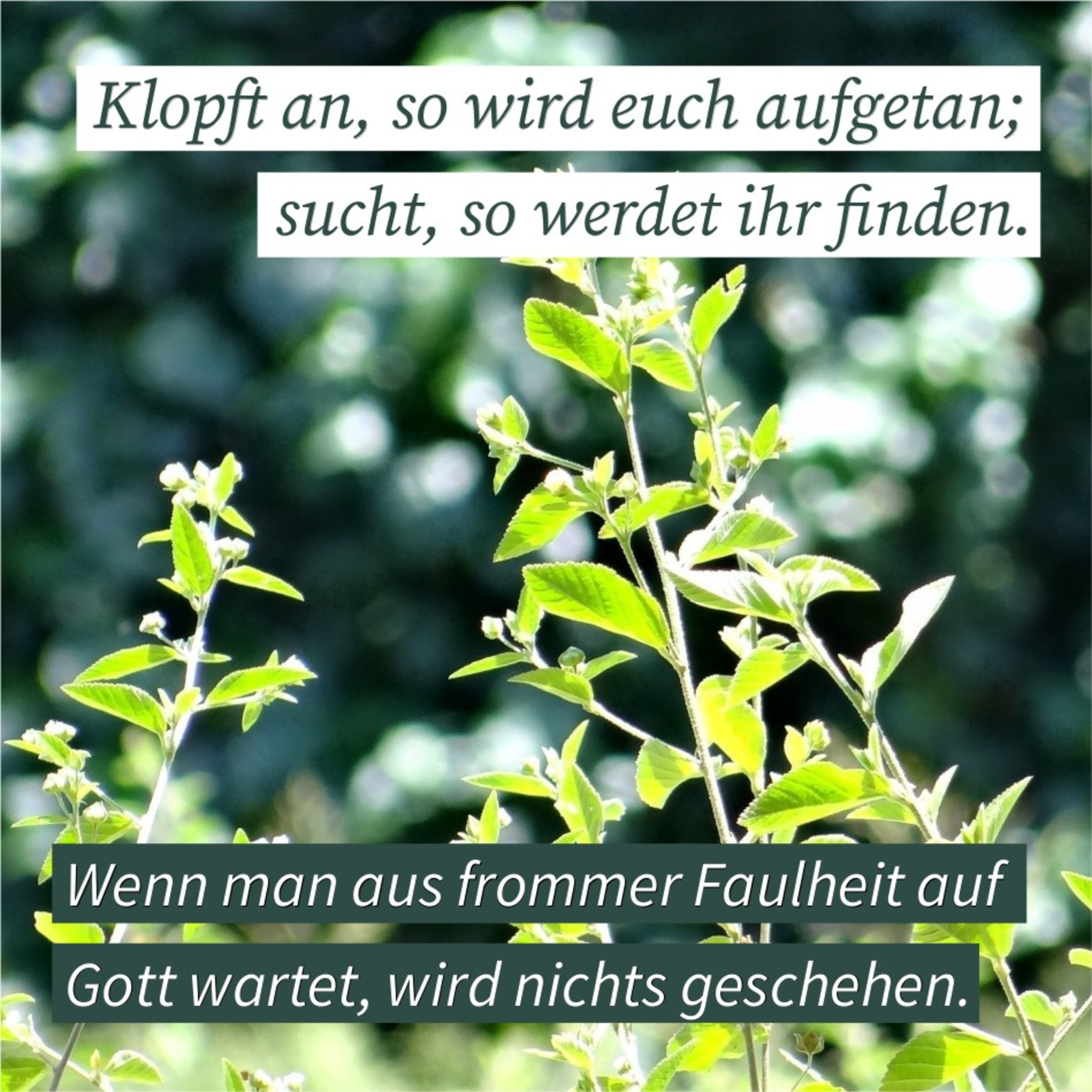 Klopft an, so wird euch aufgetan; sucht, so werdet ihr finden. Entdecke den allmächtigen Gott in deinem Leben. Wenn man aus frommer Faulheit auf Gott wartet, wird nichts geschehen.