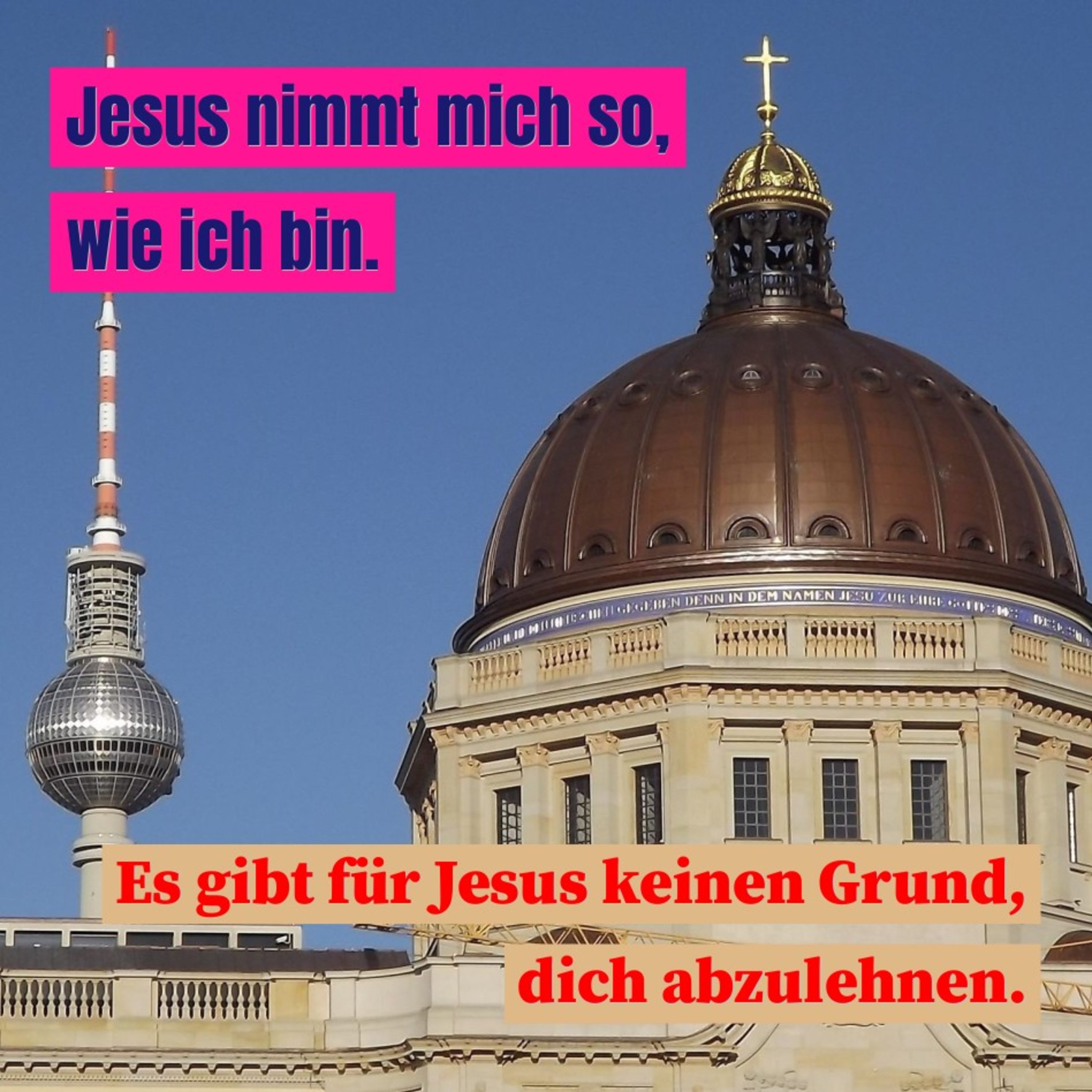 Jesus nimmt mich so, wie ich bin. Es gibt für Jesus keinen Grund, dich abzulehnen.