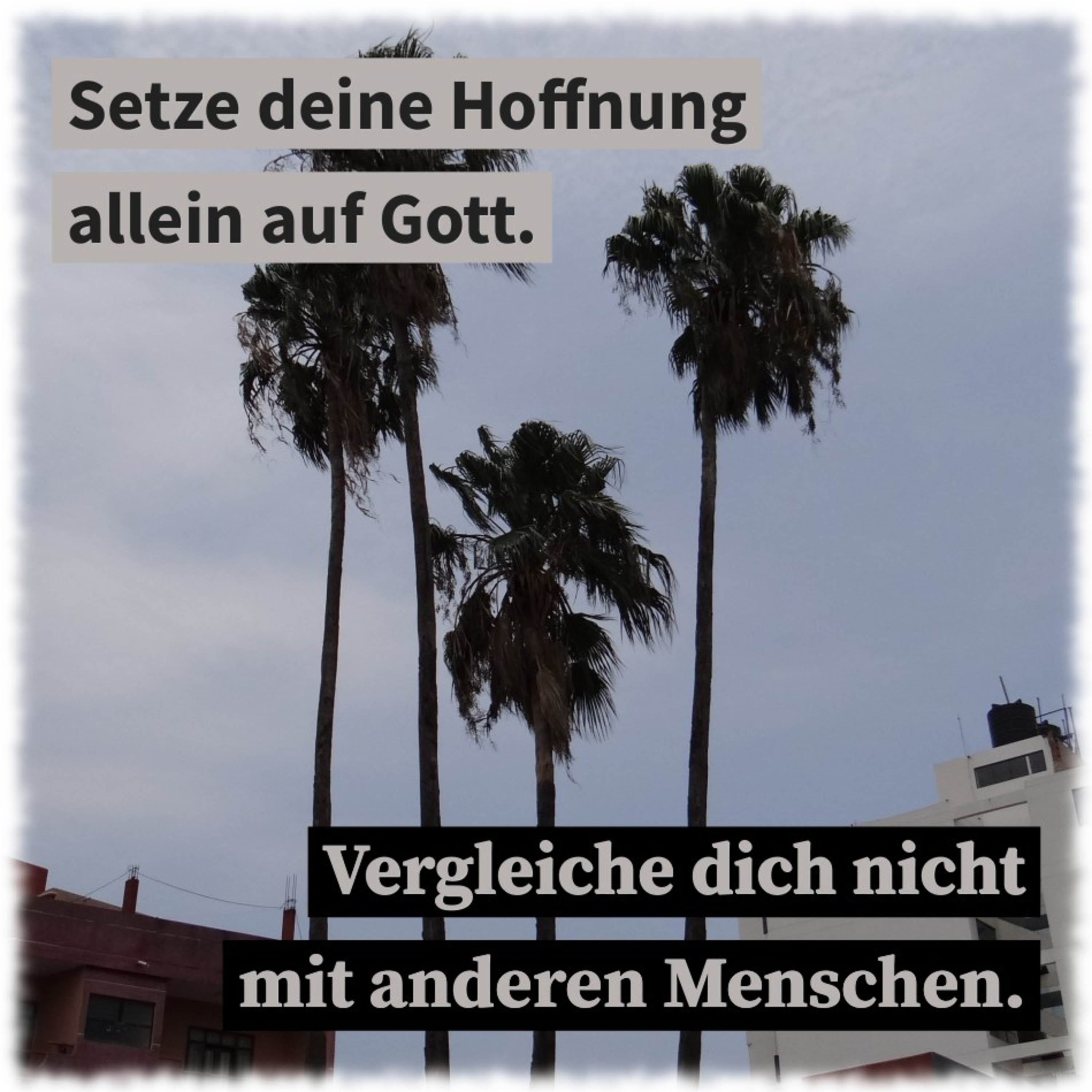 Setze deine Hoffnung allein auf Gott. Vergleiche dich nicht mit anderen Menschen. Gott kümmert sich um dich und niemand sonst.
