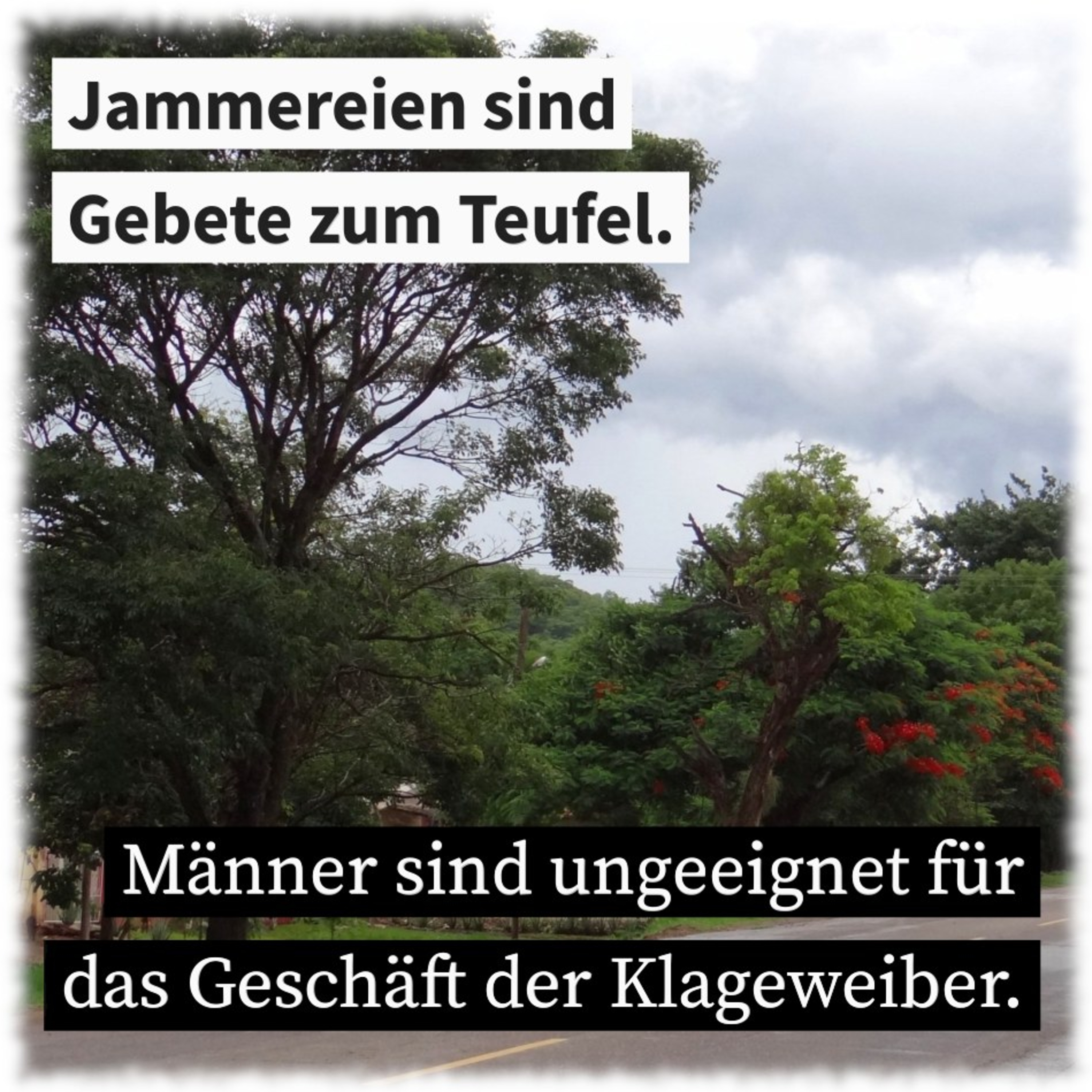 Jammereien sind Gebete zum Teufel. Männer sind ungeeignet für das Geschäft der Klageweiber.