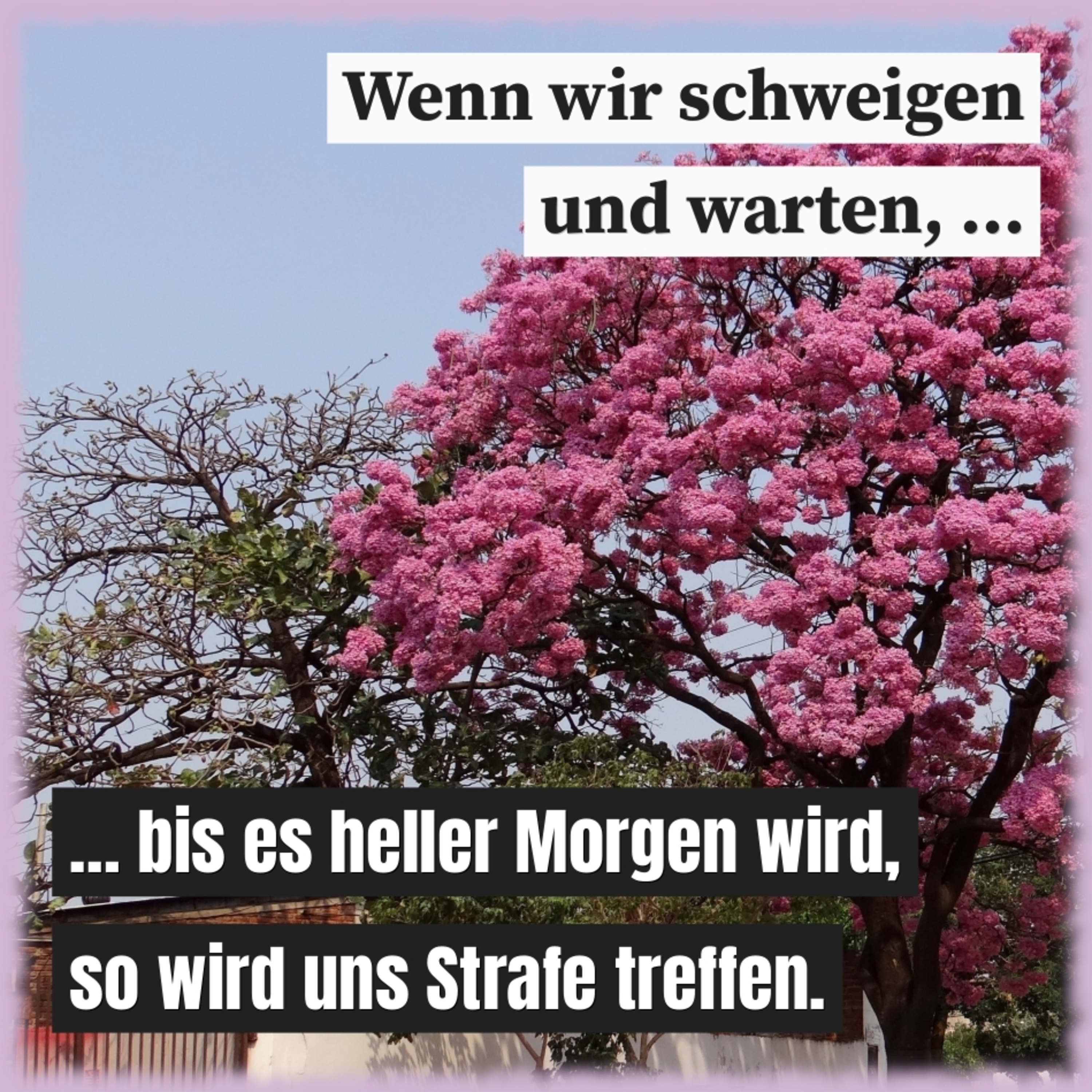 Wenn wir schweigen und warten, bis es heller Morgen wird, so wird uns Strafe treffen. Was du entdeckt und erkannt hast, das gib weiter!