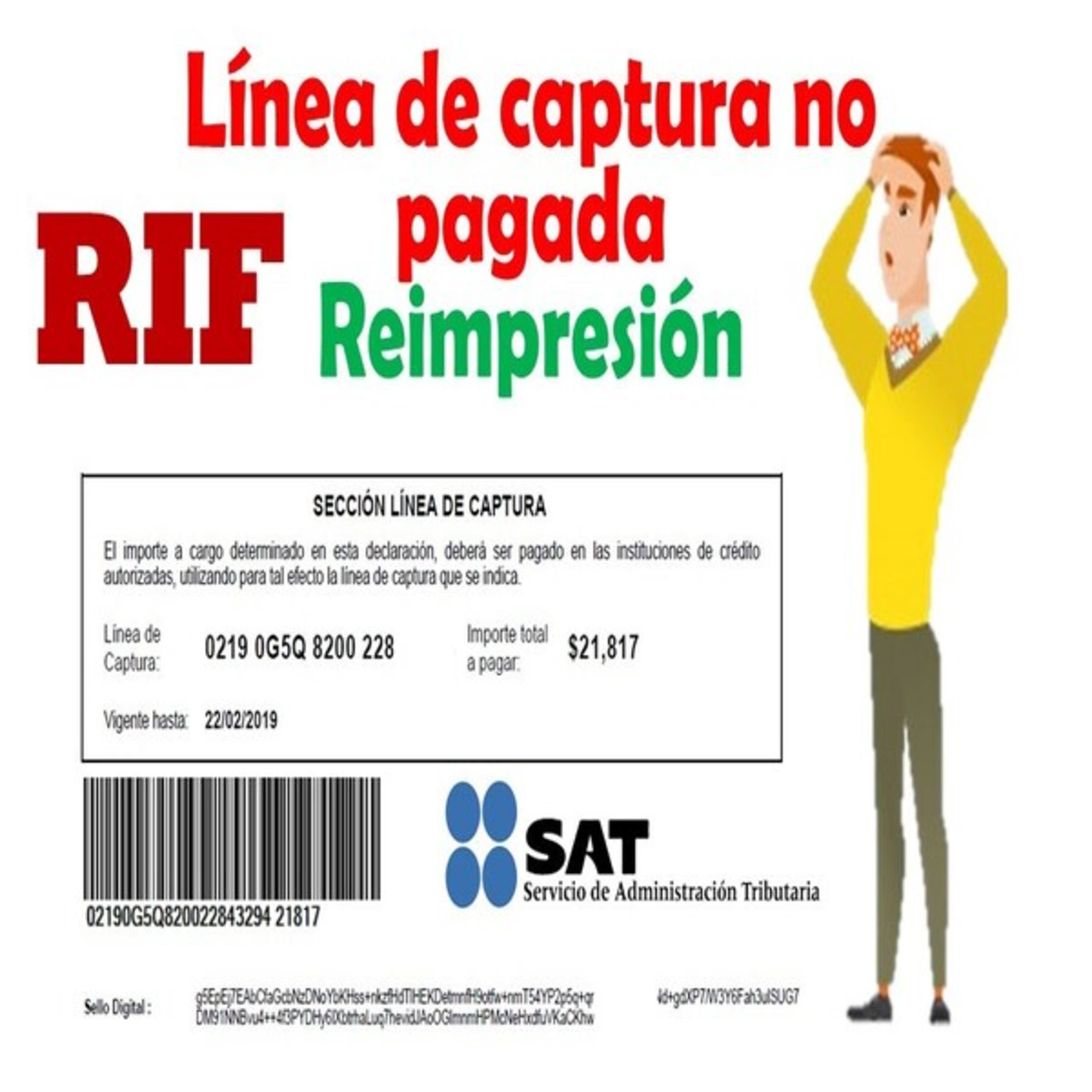 Se muestra como Reimprimir una linea de captura vencida, que no fue pagada en la fecha que correspondía para el régimen de incorporación fiscal RIF, desde Mis Cuentas.