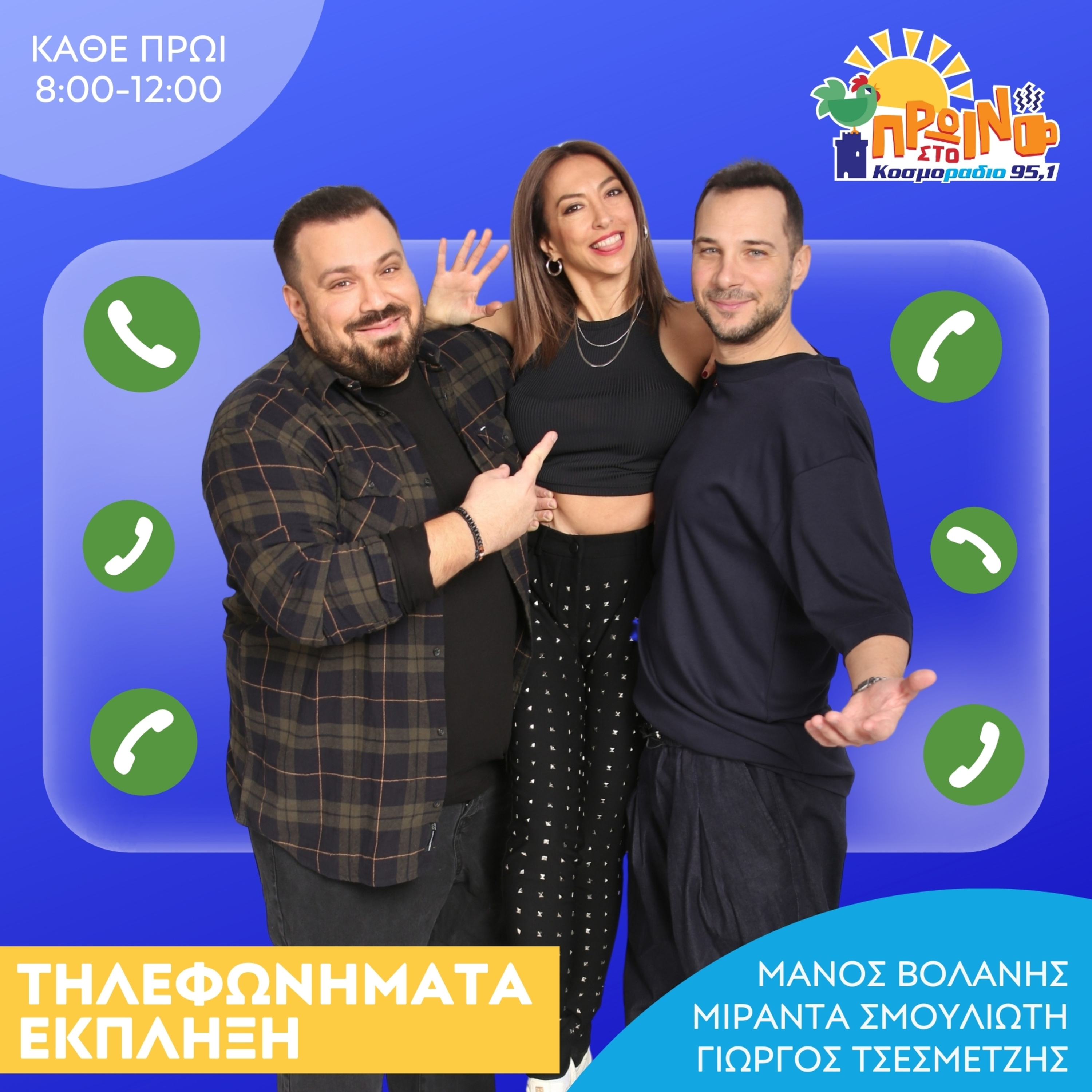 Κάθε πρωί ο Μάνος, η Μιράντα και ο Γιώργος τηλεφωνούν στους αγαπημένους σας για να ξεκινήσει η μέρα τους με ένα μεγάλο χαμόγελο!