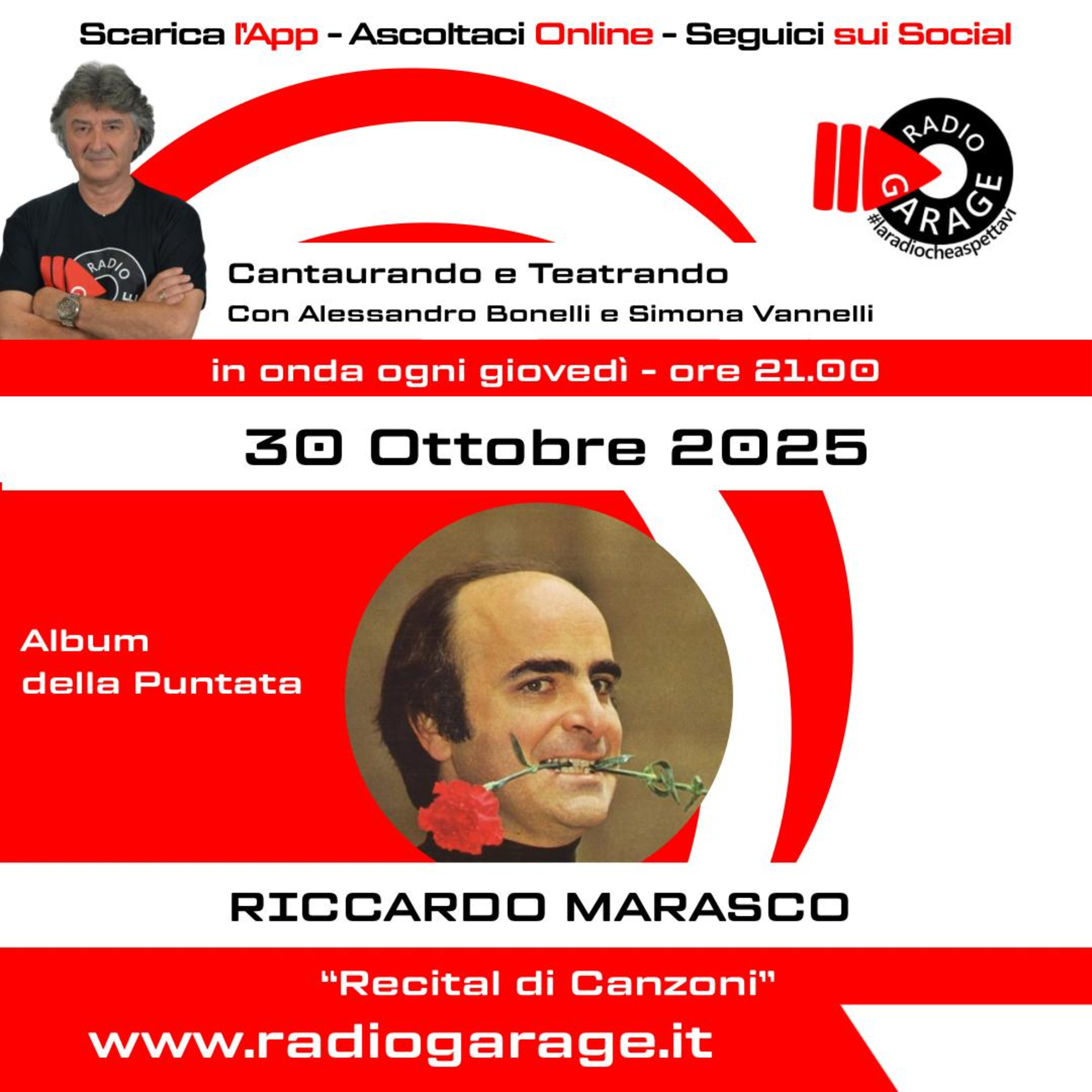 CANTAUTORANDO E TEATRANDO รจ la rubrica di Radio Garage dedicata ai cantautori italiani dalla A alla Zeta. Un programma scritto, ideato e condotto da Alessandro Bonelli in compagnia di Simona Vannelli IN ONDA OGNI GIOVEDI' DALLE ORE 21.00.
