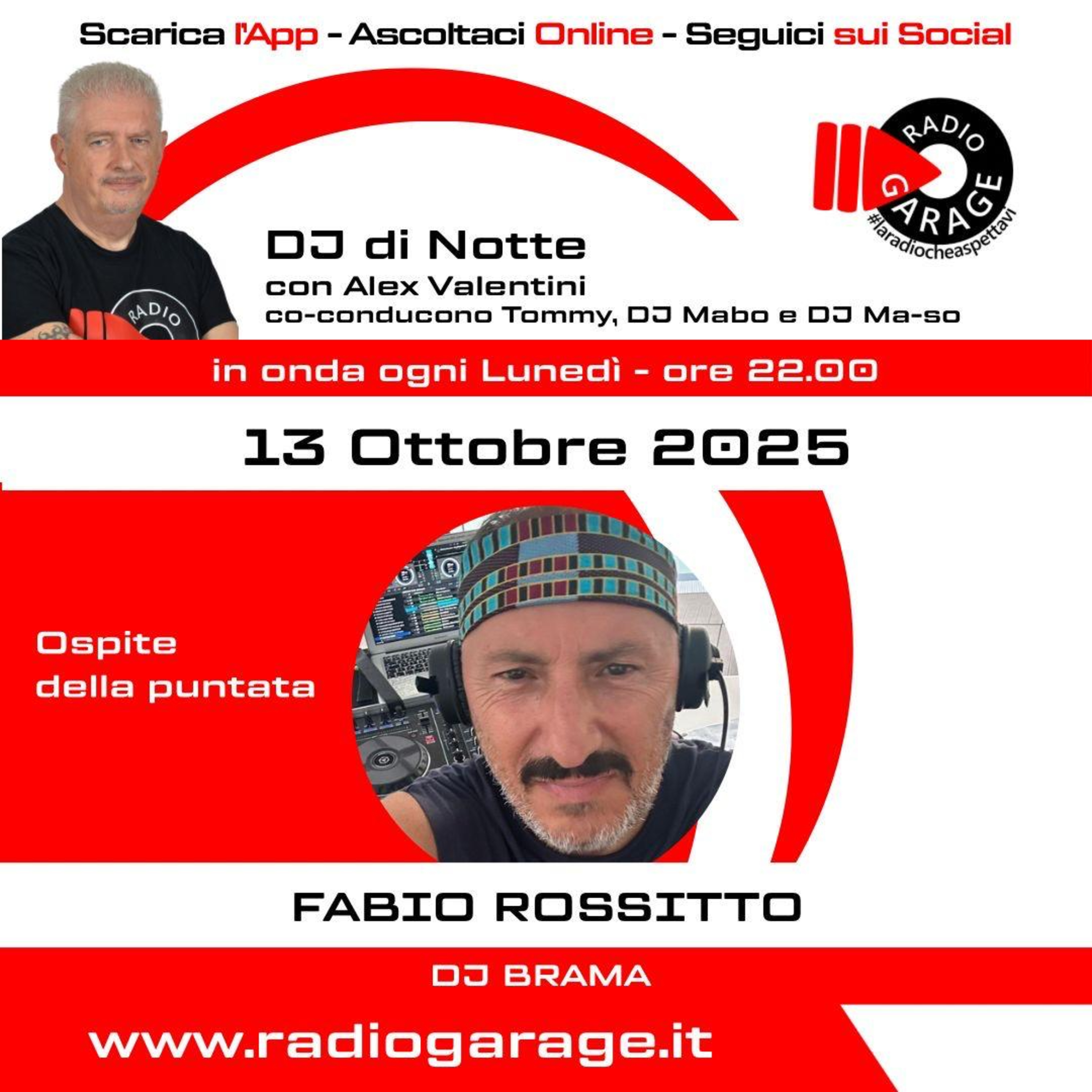 Ascoltaci dall'App, da www.radiogarage.it e dalla diretta Facebook