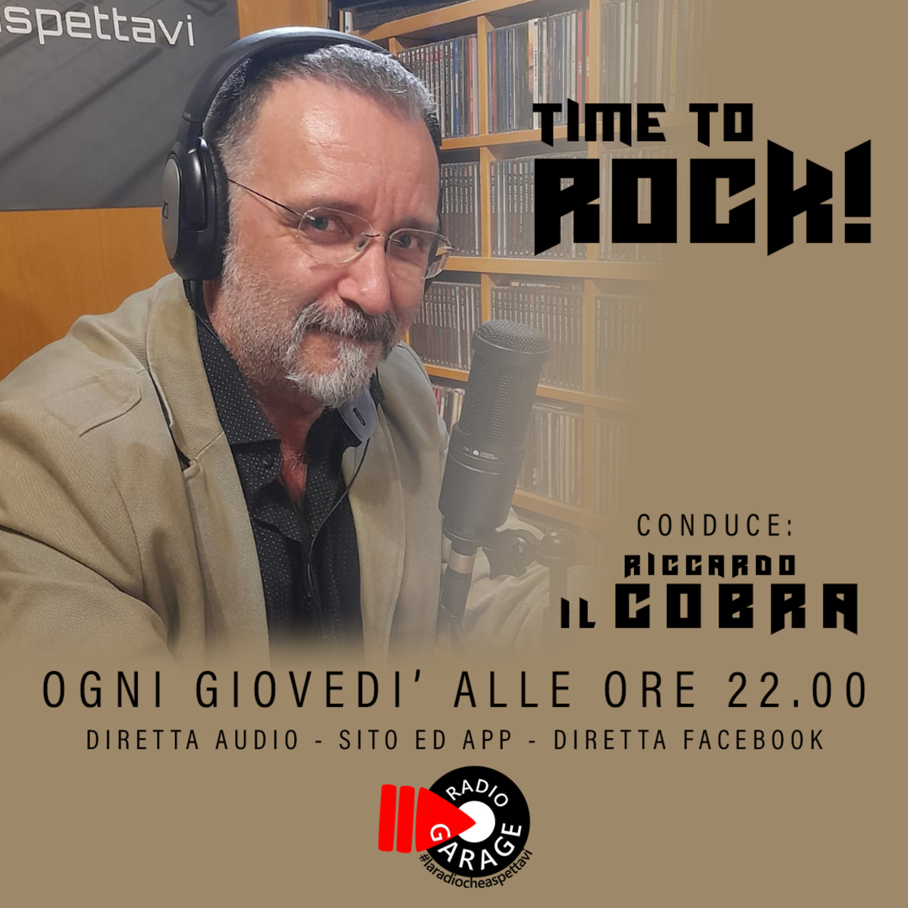 TIME TO ROCK, un viaggio musicale verso mete e tempi più o meno conosciuti, sia nel nostro paese che nell'internazionalità e, come bussola, avremo sempre il genere ROCK! Un programma scritto, ideato e condotto da Riccardo "Il Cobra" IN ONDA su Radio Garage OGNI GIOVEDI' ALLE ORE 22.00.