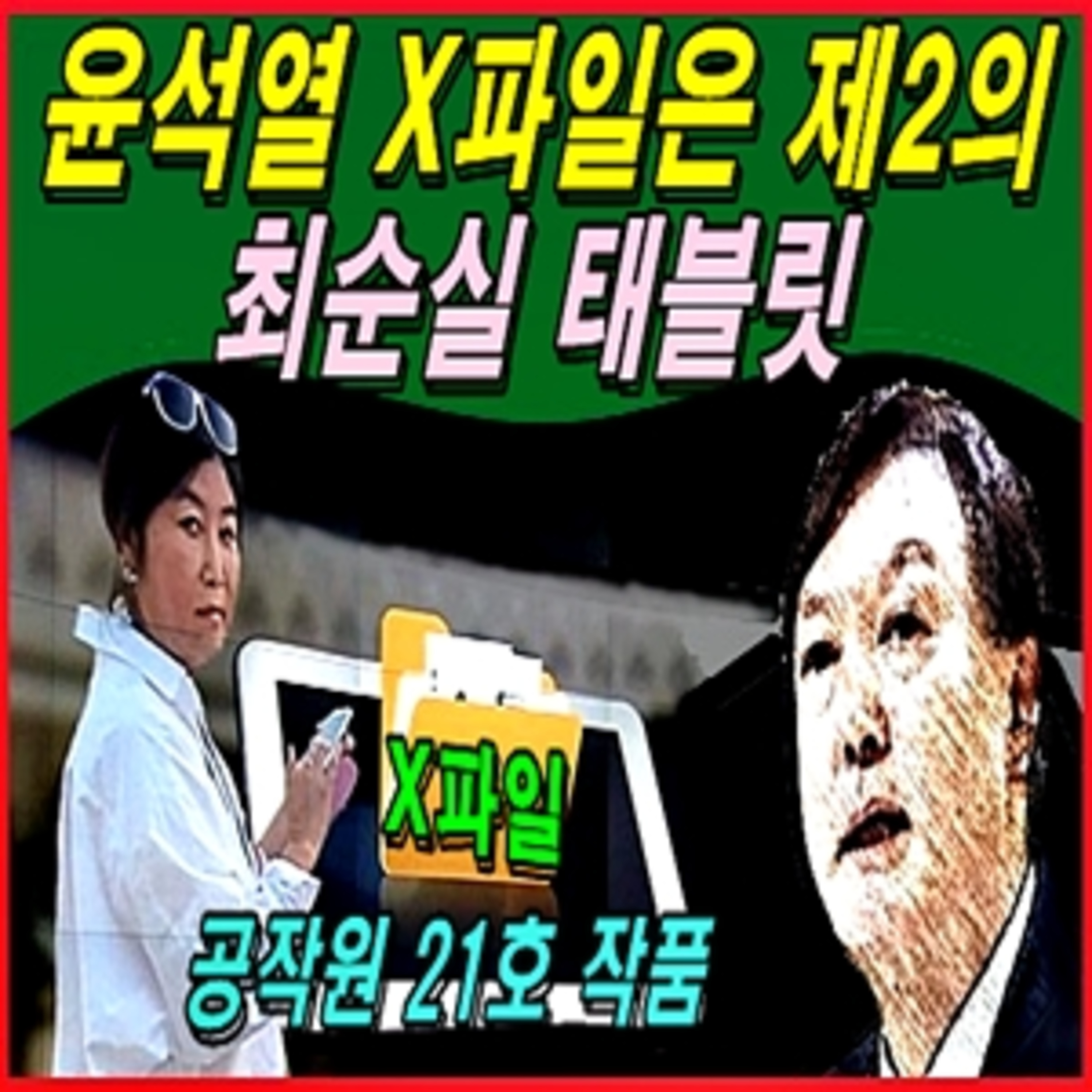 윤석열 파일은 북한이 공작원 21호에게 내린 지령으로 공작된 최순실 가짜 테블릿하고 똑 같은 수법으로 수단과 사람만 바뀐 것으로 윤석열의 실체를 잘 나타내고 있는 정치공작으로 반드시 북한의 난수방송이 지령된 공작원 21호와 27호에 대한 수사를 하루속히 진행해야 하는 이유가 바로 이런 정치공작 때문인 것입니다.